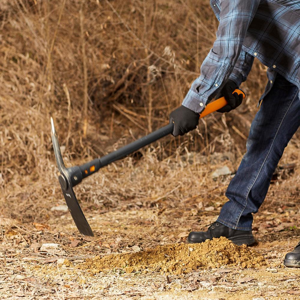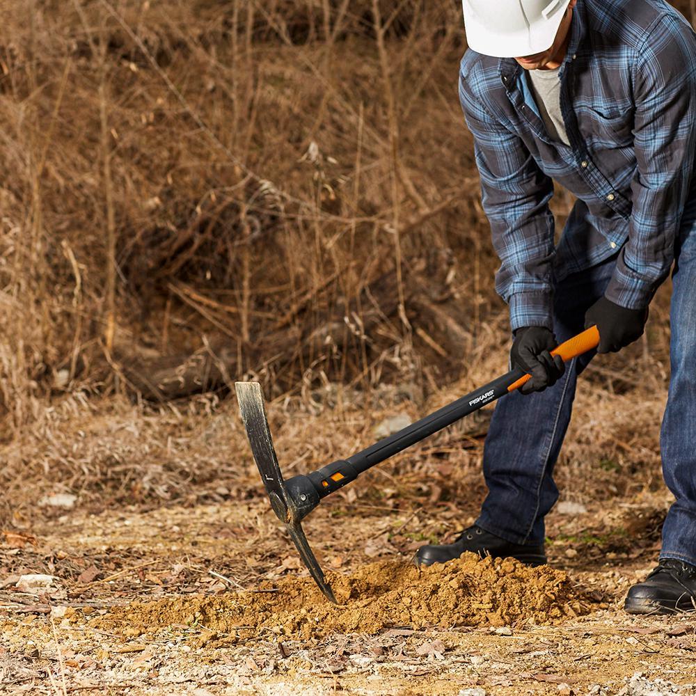 • Ideal for breaking up rocky surfaces such as gravel and hardened, dried earth (pointed end), or for use as a hoe when digging in tough soil (flat end)