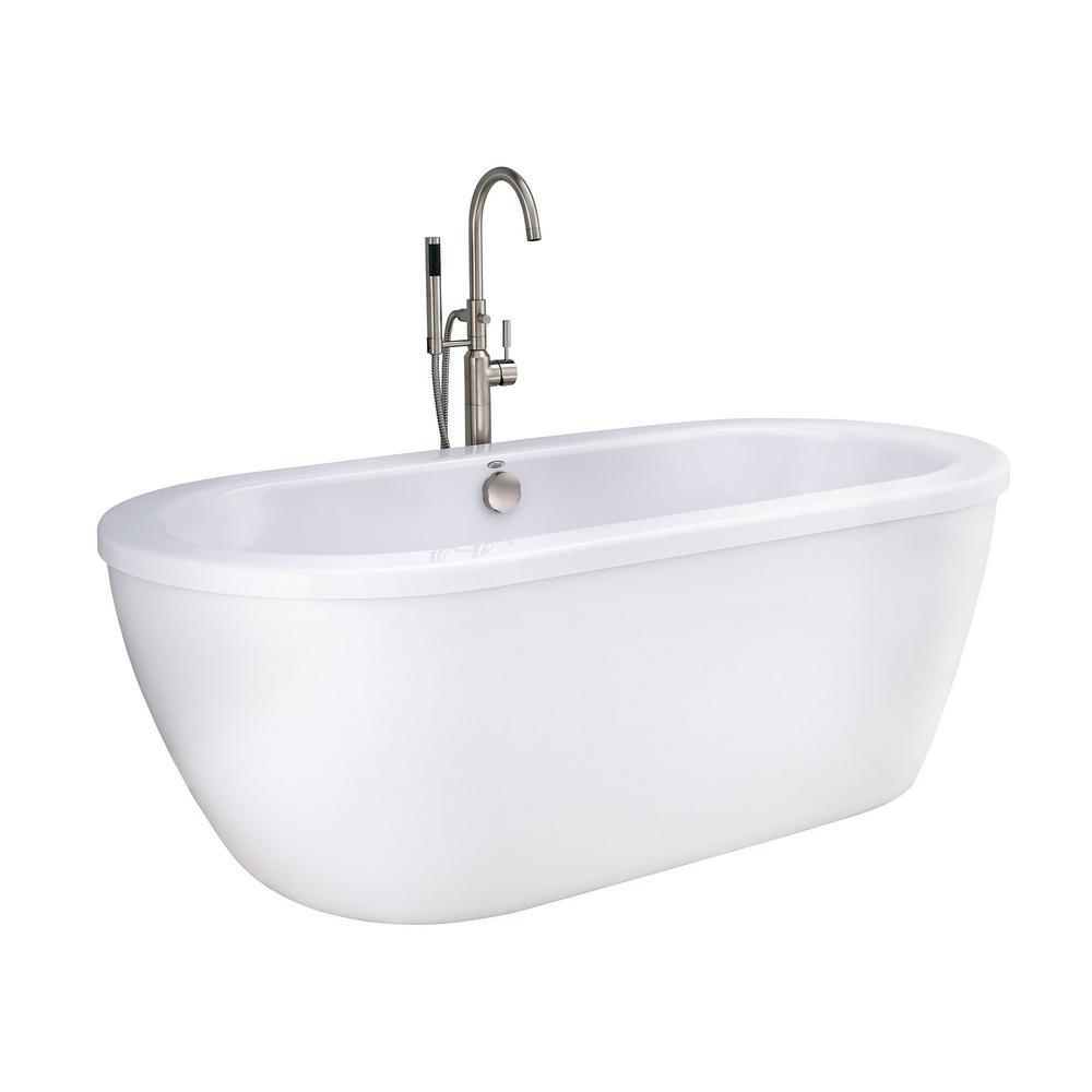 Cadet 5.5 ft. Acrylic Flatbottom Freestanding Bathtub in Artic White with Brushed Nickel Drain and Filler
