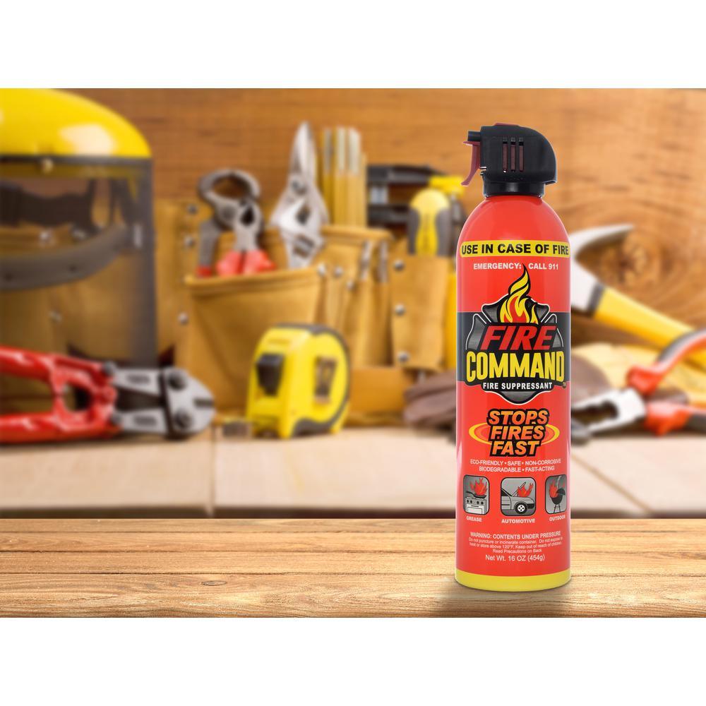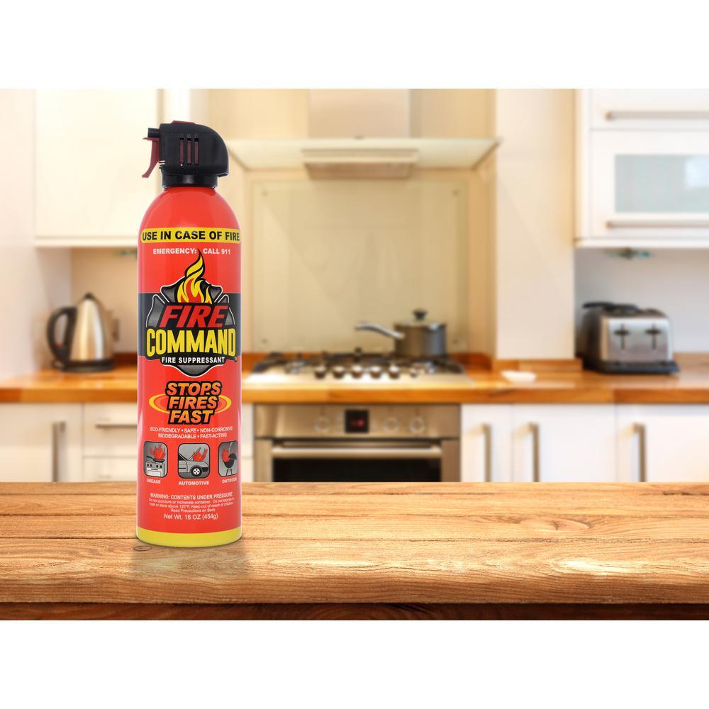 Fire Command fire suppressant is fast, easy to use and safe. It puts out fires by reducing the heat of the fire. With an initial spray range of up to 10 ft., a spray capacity of up to 1-minute and an easy to use trigger release, the user just needs to point and shoot. Fire Command fire suppressant is available in a 16 oz. capacity lightweight aluminum container that will not rust. With kitchen cooking being the leading cause of all home fires, Fire Command fire suppressant should be made accessible in all kitchens. The non-corrosive foaming agent that is dispensed by Fire Command is UL certified. The foam is safe to the touch and does not create toxic air when dispensed. The foam is PH neutral and contains no toxic materials. The foam is biodegradable in water-soluble for easy cleanup. Fire Command has a 3-year product life. If not used during the 3-year product life, simply dispense the foam from the can into a sink or shower and recycle the aluminum container. Fire Command is certified for both class A and B fires and therefore can be used in autos, motorhomes and boats. Fire Command should be stored in a ventilated area with a temperature range of 32°F to 120°F.