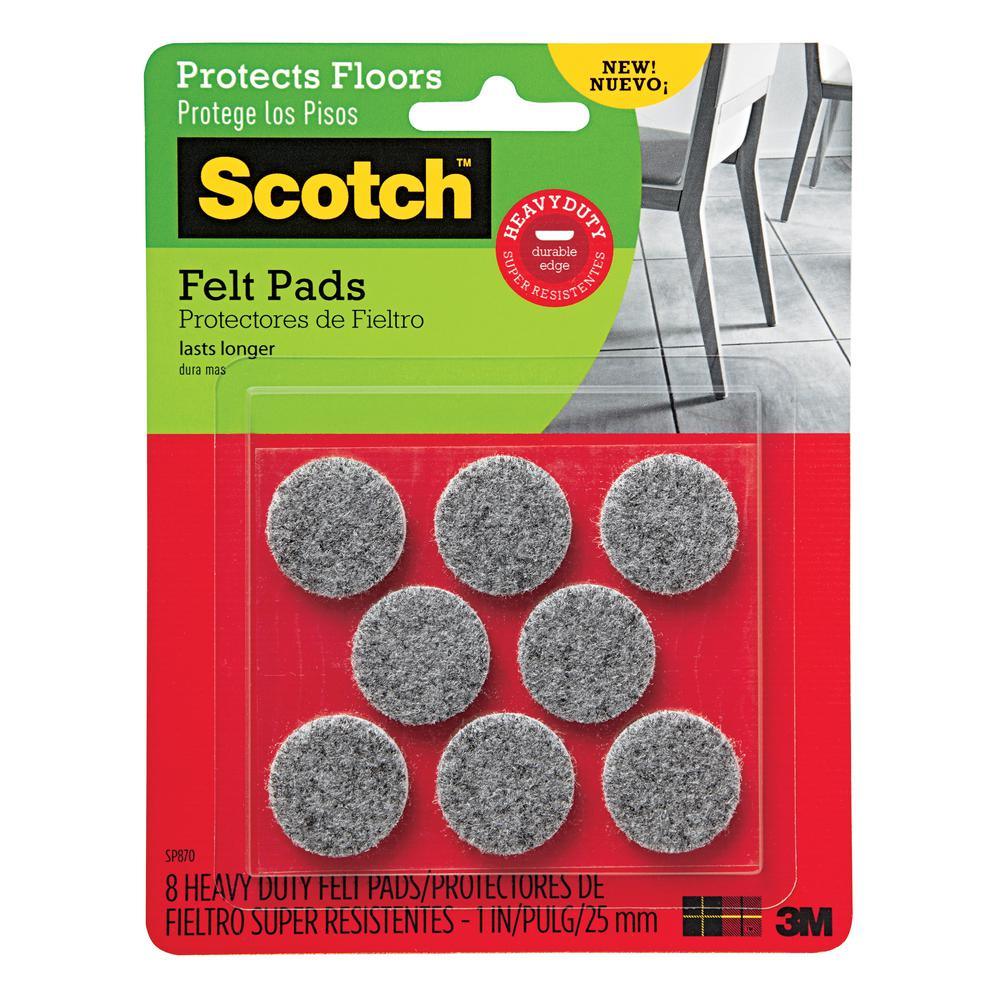 1 in. Gray Round Heavy-Duty Surface Protection Felt Floor Pads (8-Pack)