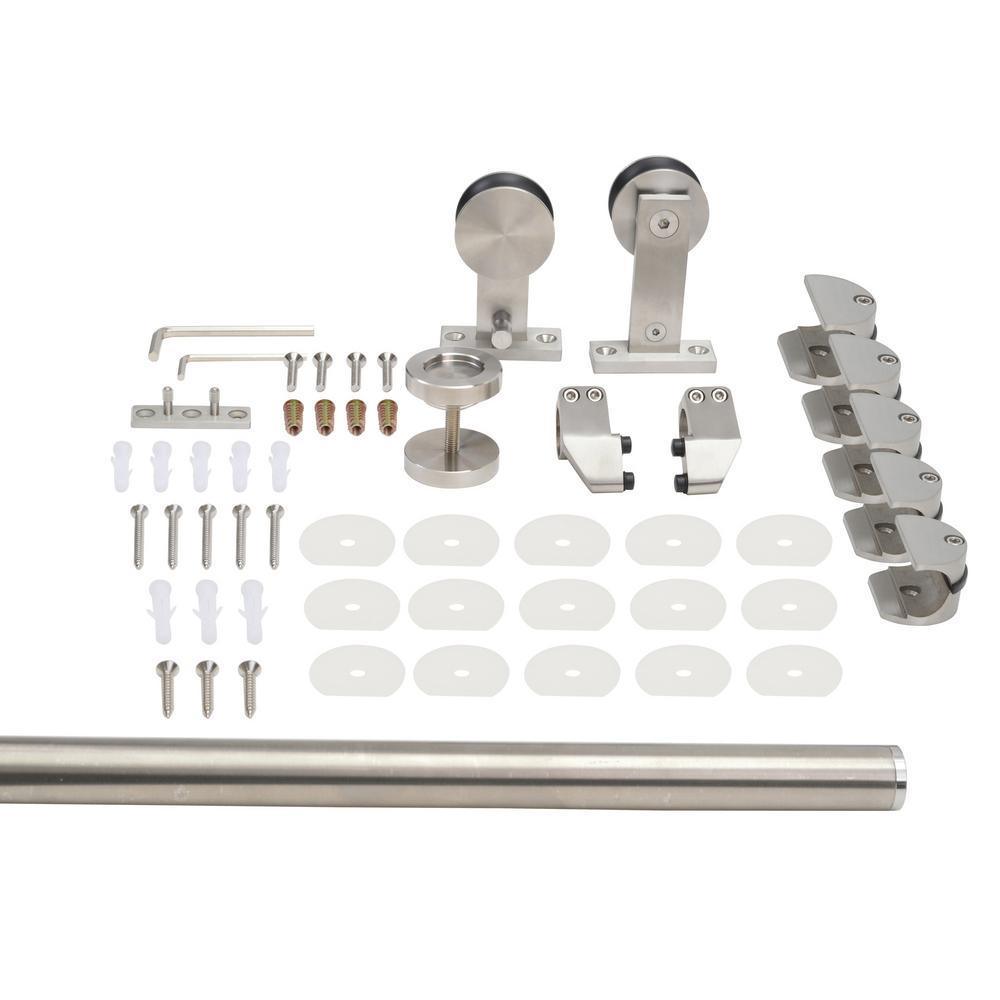 • Set includes: 78-3/4 in. track, 5-wall hangers, 2-door stops, 2-rollers, 1-floor guide, 1-door handle for 35 mm thick wood door, hex tools and installation screws