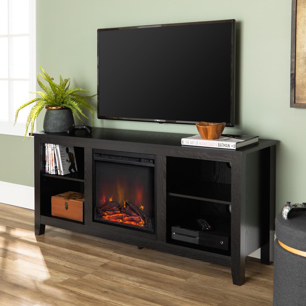 58 in. Rustic Farmhouse Fireplace TV Stand - Black
