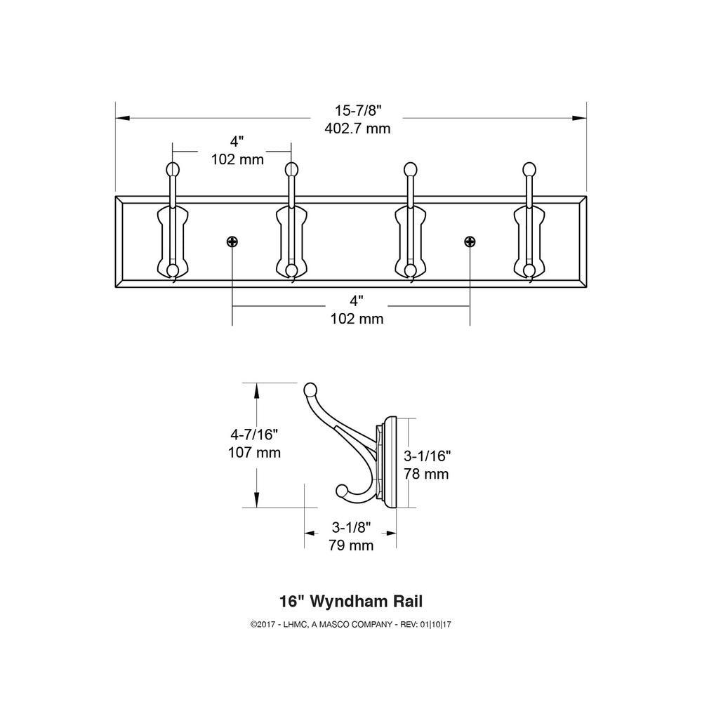 Wyndham 16 in. Espresso and Polished Nickel Hook Rack