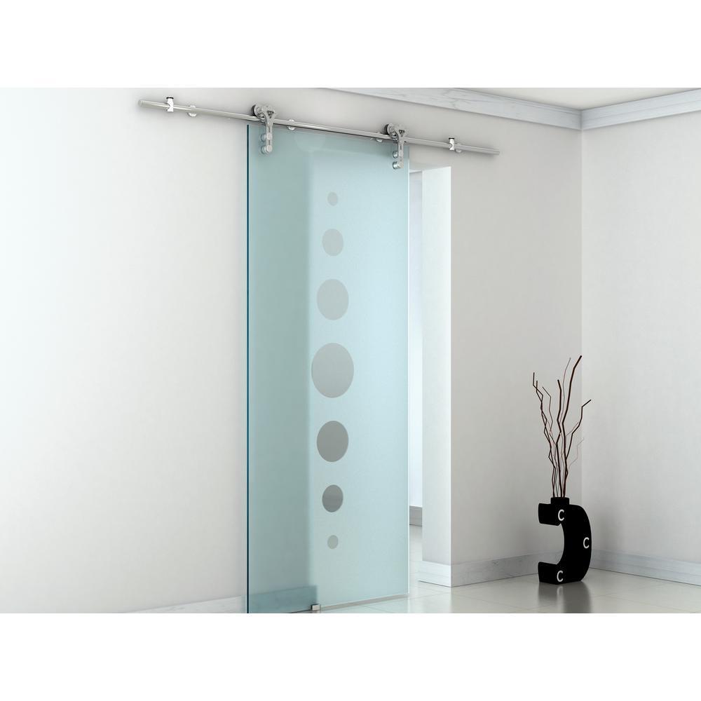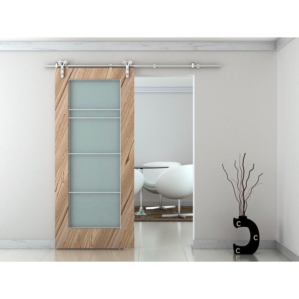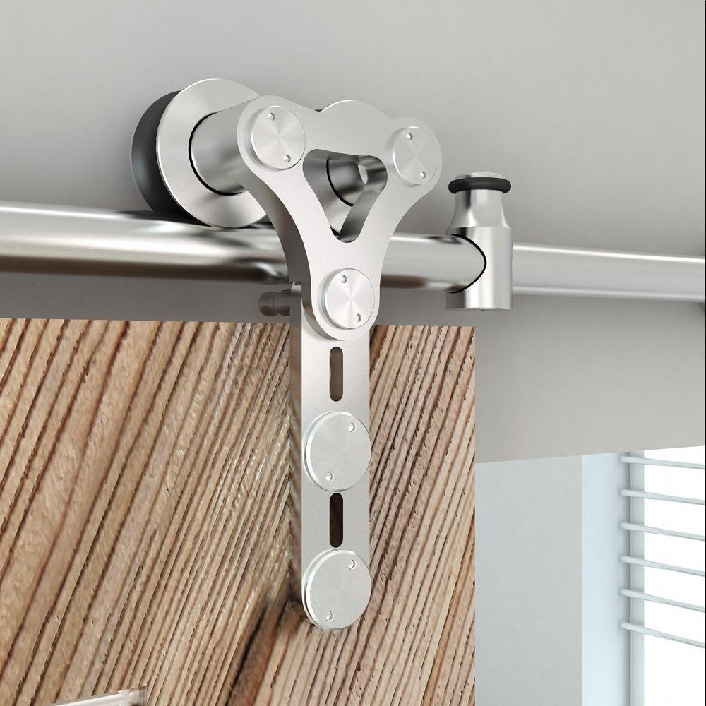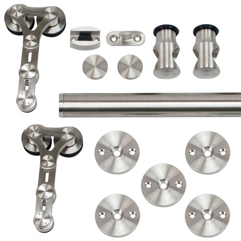 96 in. Stainless Steel Dual Wheel Strap Rolling Door Hardware Kit for Wood or Glass Door