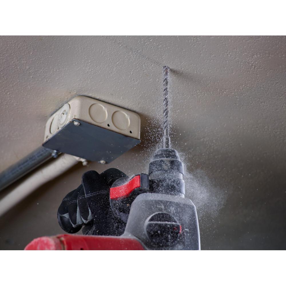 Milwaukee M/2 2-Cutter SDS-Plus Rotary Hammer Drill bits provide up to 30% faster drilling speeds and up to 20% more holes per charge in cordless rotary hammers. Breaker Point pulverize the material more effectively resulting in up 30% faster drilling speeds compared to competitive SDS-Plus drill bits. The variable flute allows for maximum debris extraction leading to up 20% more holes per charge in cordless rotary hammer while making it a very durable bit in corded and cordless rotary hammers. The enhanced rebar guards provide increased durability in hard aggregate and rebar. Additionally, M/2 features a centering tip for exact spot drilling, wear mark indicator indicating when the bit no longer meets ANSI diameter requirements, and a reinforced flute for durability and minimized vibration. The increased life and efficiency of the M/2 2-Cutter drill bit line provides the ideal solution in brick, block, and concrete for cordless and corded rotary hammer users.