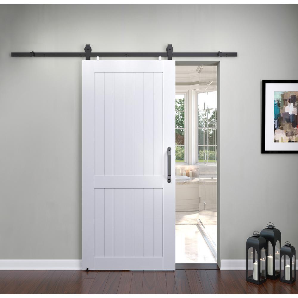 36 in. x 84 in. Millbrooke White H Style Ready to Assemble PVC Vinyl Sliding Barn Door with Hardware Kit