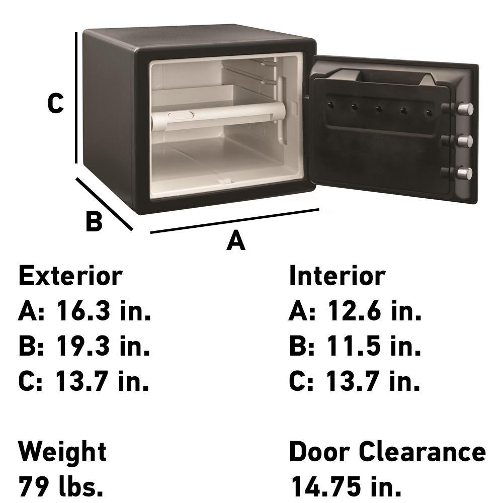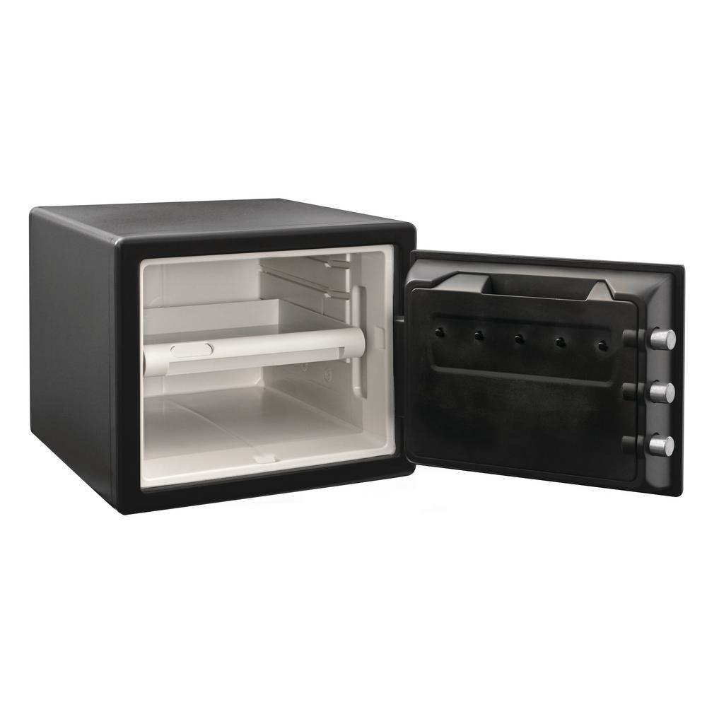 The SFW082DTB Fireproof Safe and Waterproof Safe provides powerful protection in a size convenient for any home or small business office. Additionally, the dial combination lock and secondary locking key provides added security. This safe combines features like large, 1-inch bolts and a pry-resistant hinge bar with third party Verified protection from fire and flood. With an adjustable tray, you can organize your documents and valuables to best fit your needs.