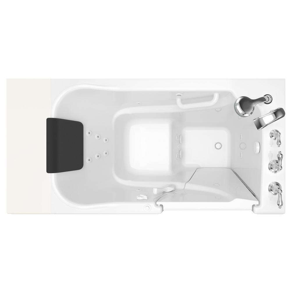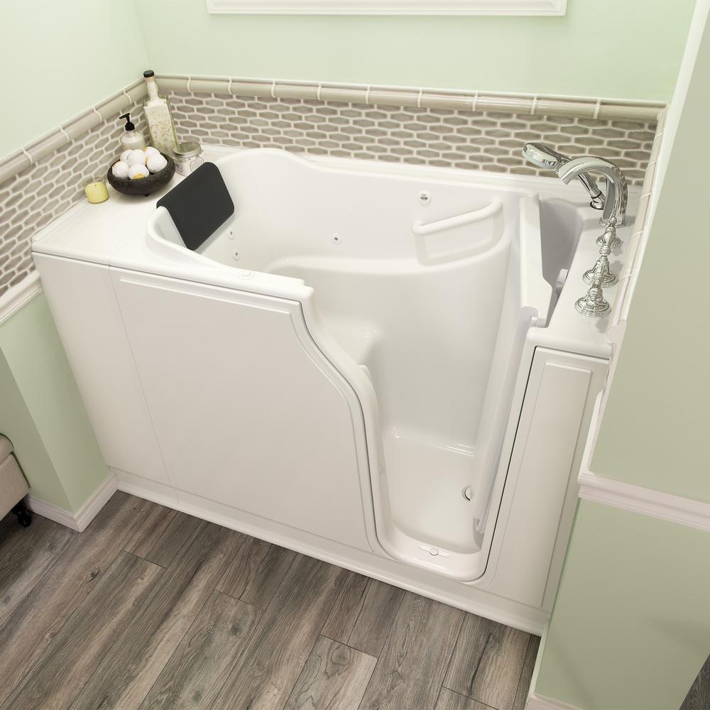 The American Standard 30 in. x 52 in. Gelcoat walk-in bath provides a similar bathing experience to larger models but fits in smaller spaces and uses less water. The included tub extender allows this tub to retrofit in the same space as a standard bathtub. The full sized, V-shaped door with a low door threshold allows ease of entry and exit. Fully equipped, the 109 Premium Series offers all the latest in safety and comfort features with the most advanced therapeutic options and backed by a lifetime warranty on the door seal, a 10 year warranty on the tub shell and a 5 year warranty on all other components.