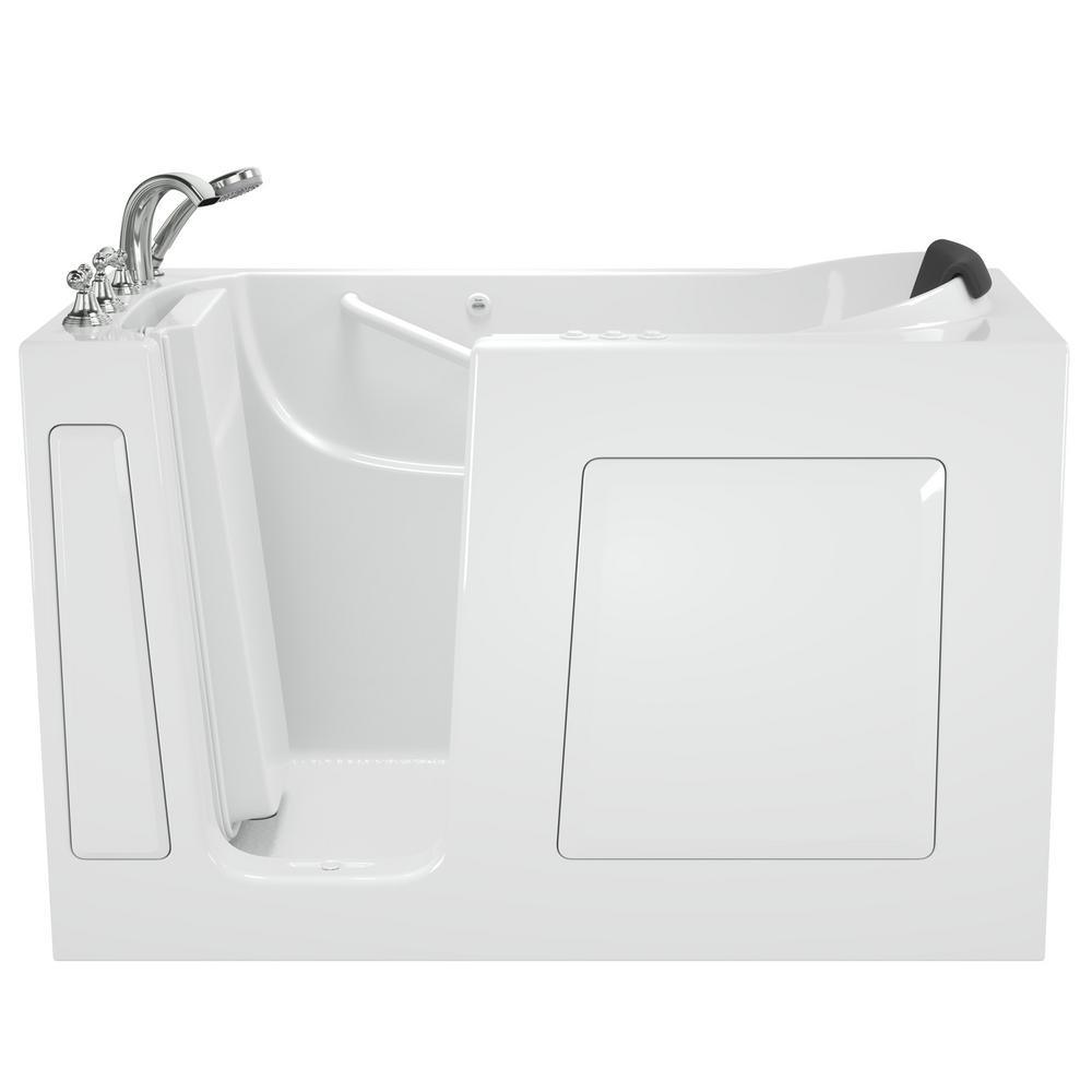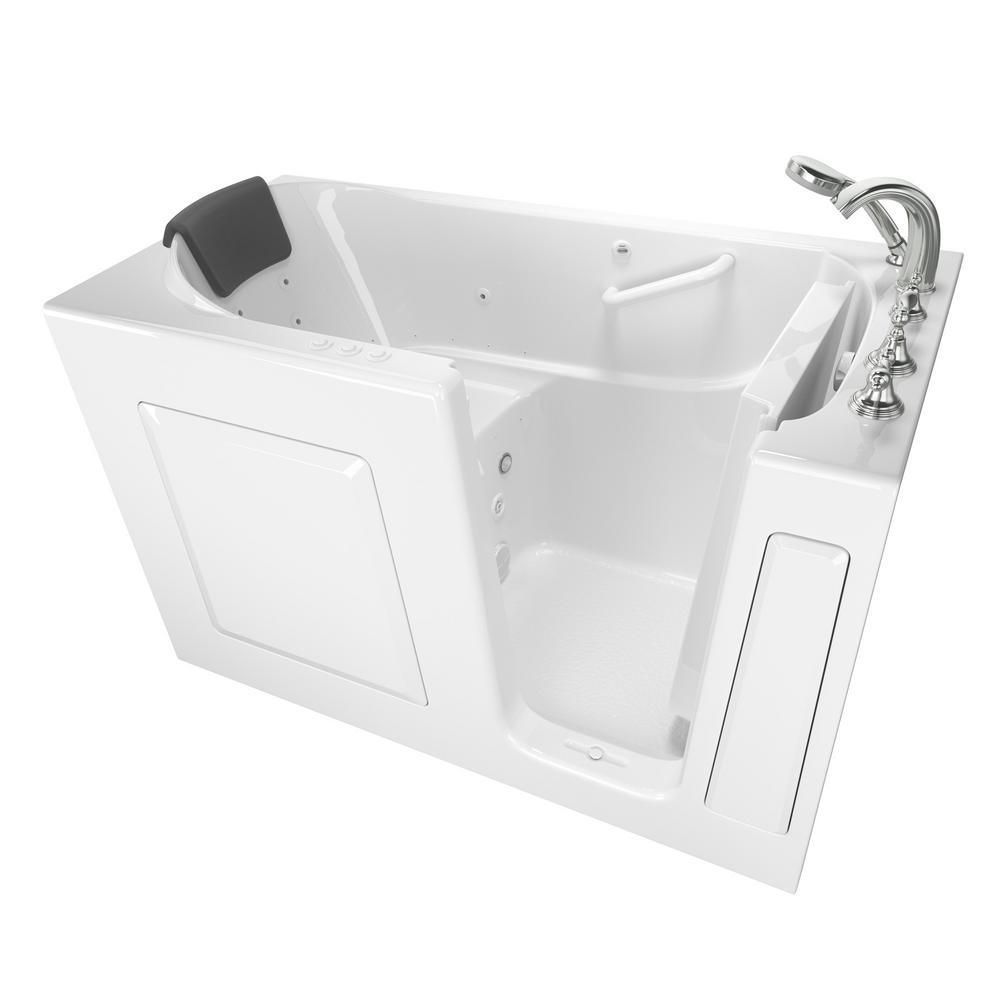 The American Standard 30 in. x 60 in. Gelcoat walk-in bath provides the maximum in therapeutic soaking pleasure with the largest water capacity in our product line. The full sized, V-shaped door with a low door threshold allows ease of entry and exit. Fully equipped, the 109 Premium Series offers all the latest in safety and comfort features with the most advanced therapeutic options and backed by a lifetime warranty on the door seal, a 10-year warranty on the tub shell and a 5-year warranty on all other components.