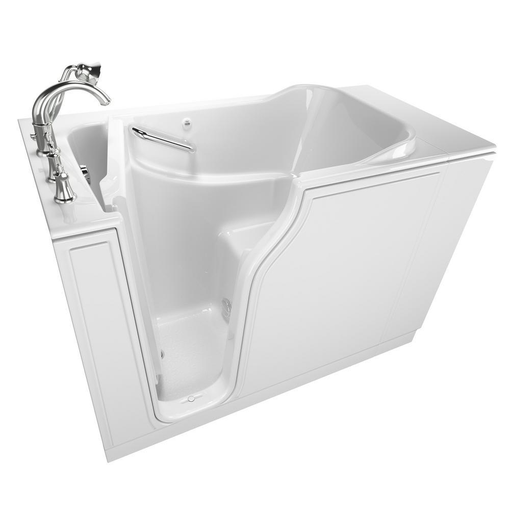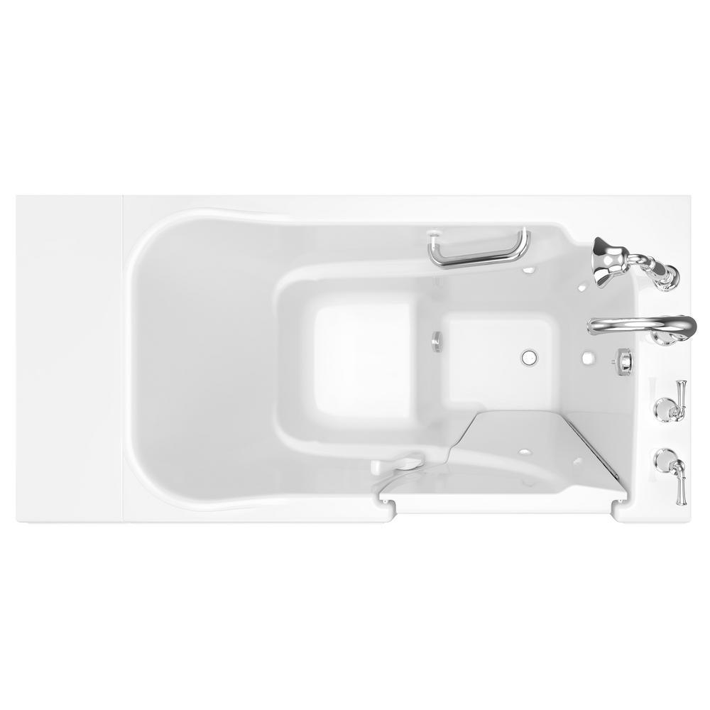 The American Standard 30 in. x 52 in. Gelcoat walk-in bath provides a similar bathing experience to larger models but fits in smaller spaces and uses less water. The included tub extender allows this tub to retrofit in the same space as a standard bathtub. The full sized, V-shaped door with a low door threshold allows ease of entry and exit. Fully equipped, the 409 Value Series-available only at ARB775W offers all the latest in safety and comfort features bundled together at one low cost and backed by a lifetime warranty on the door seal, a 10-year warranty on the tub shell and a 5-year warranty on all other components.