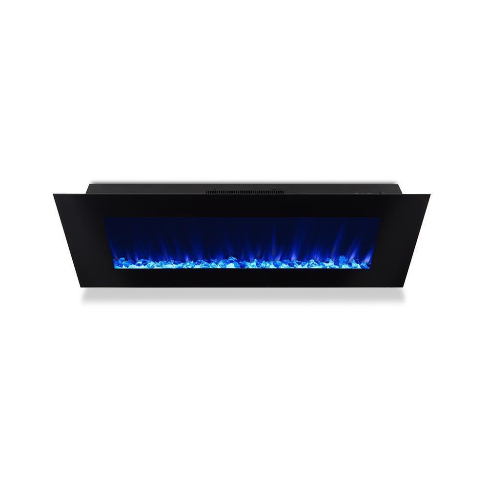 The DiNatale 50” wall-mounted fireplace turns fire into stylish and sophisticated art for any room in your home. The realistic flames flicker and dance on a bed of brilliant glass adding stunning elegance to your walls. A remote control is provided for convenient operation. Dual heat settings allow you to adjust the warmth or simply turn off the heat and enjoy the striking ambience of the flames. Enjoy the option of displaying either orange or blue flames with adjustable brightness levels. UL rated, simply plug into any standard electrical outlet without the need for professional installation or an electrician.