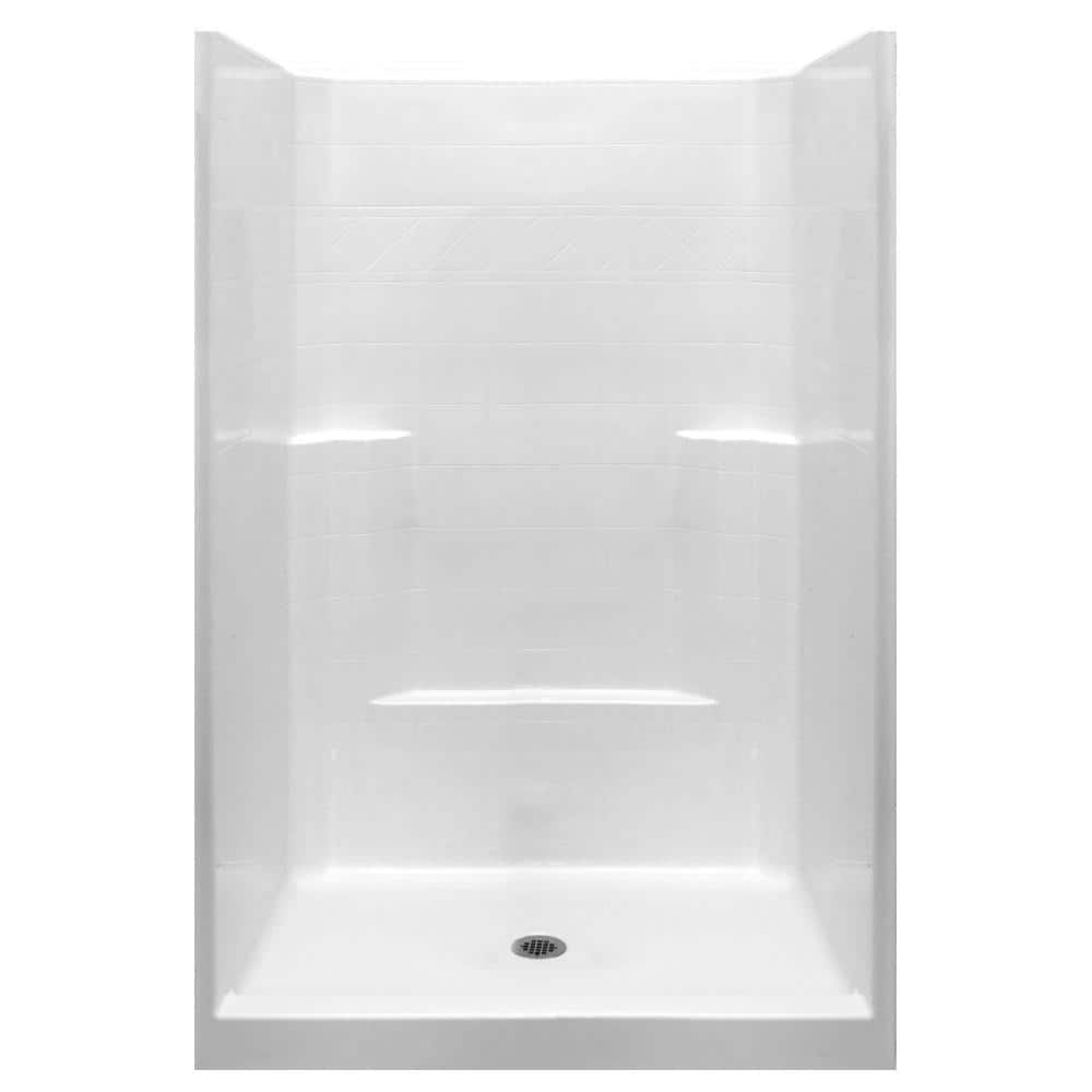Standard 42 in. x 42 in. x 80 in. 1-Piece Low Threshold Shower Stall in White with Center Drain