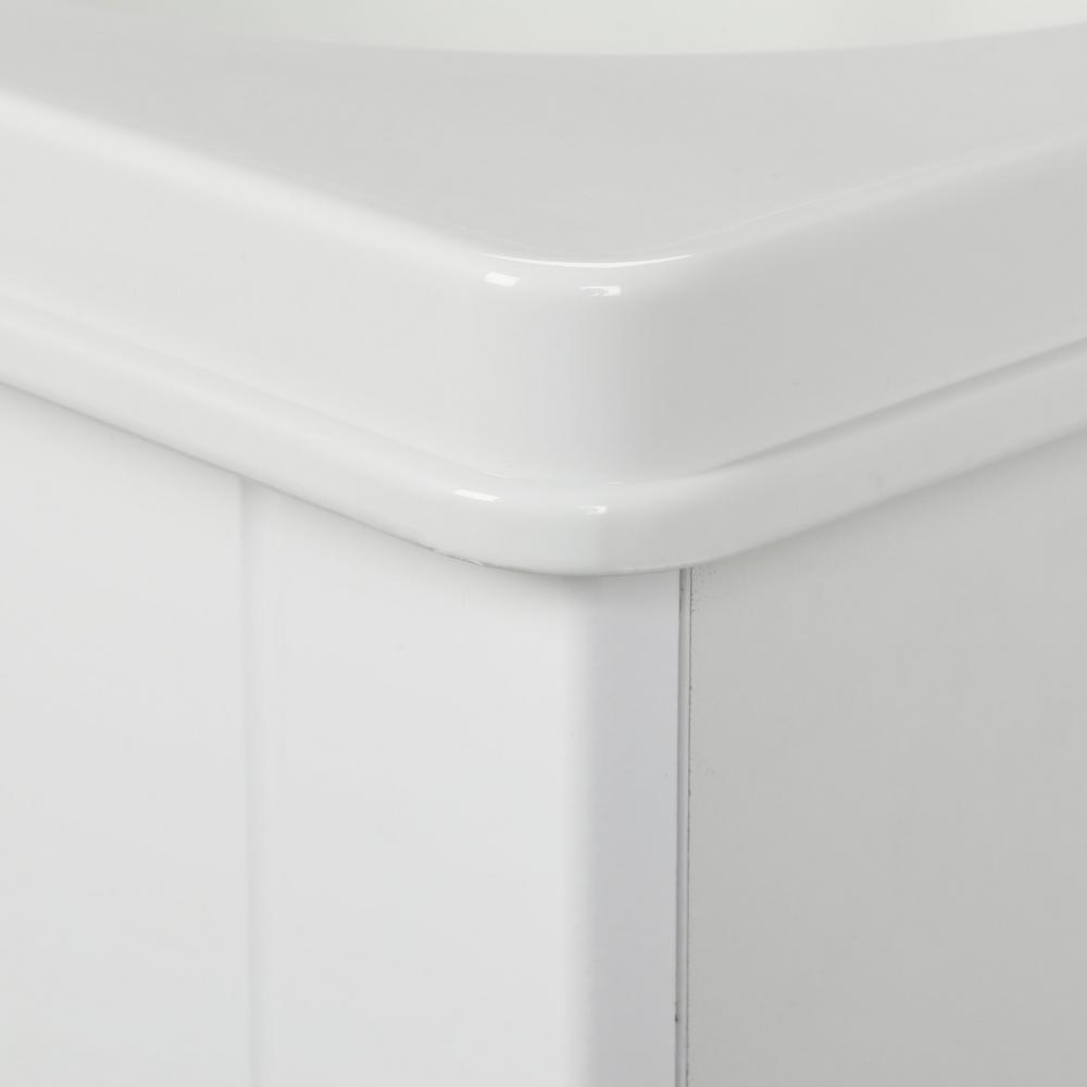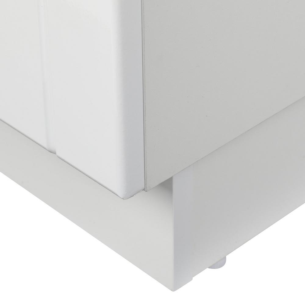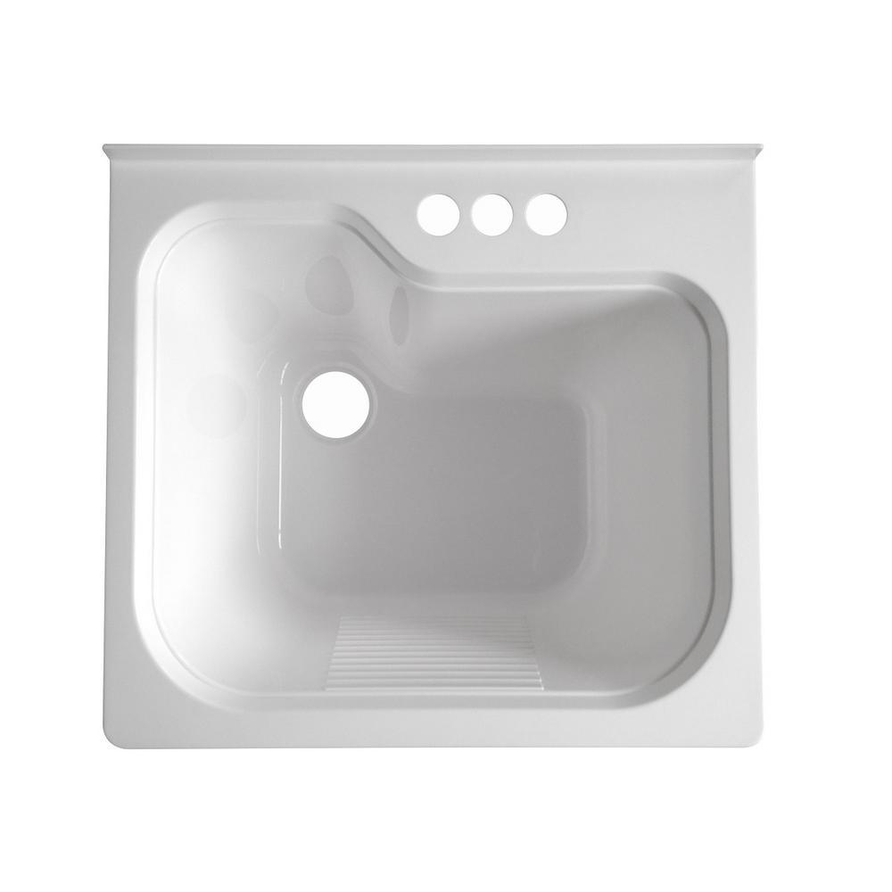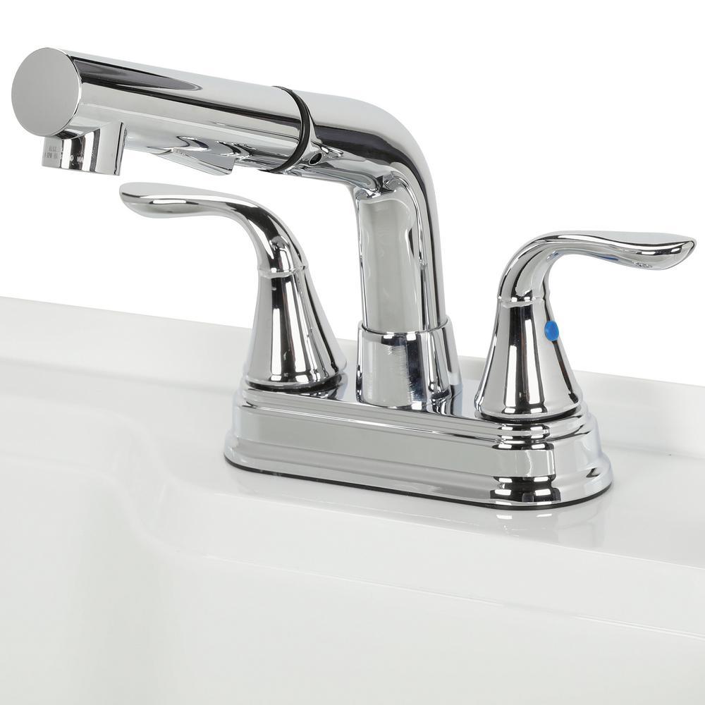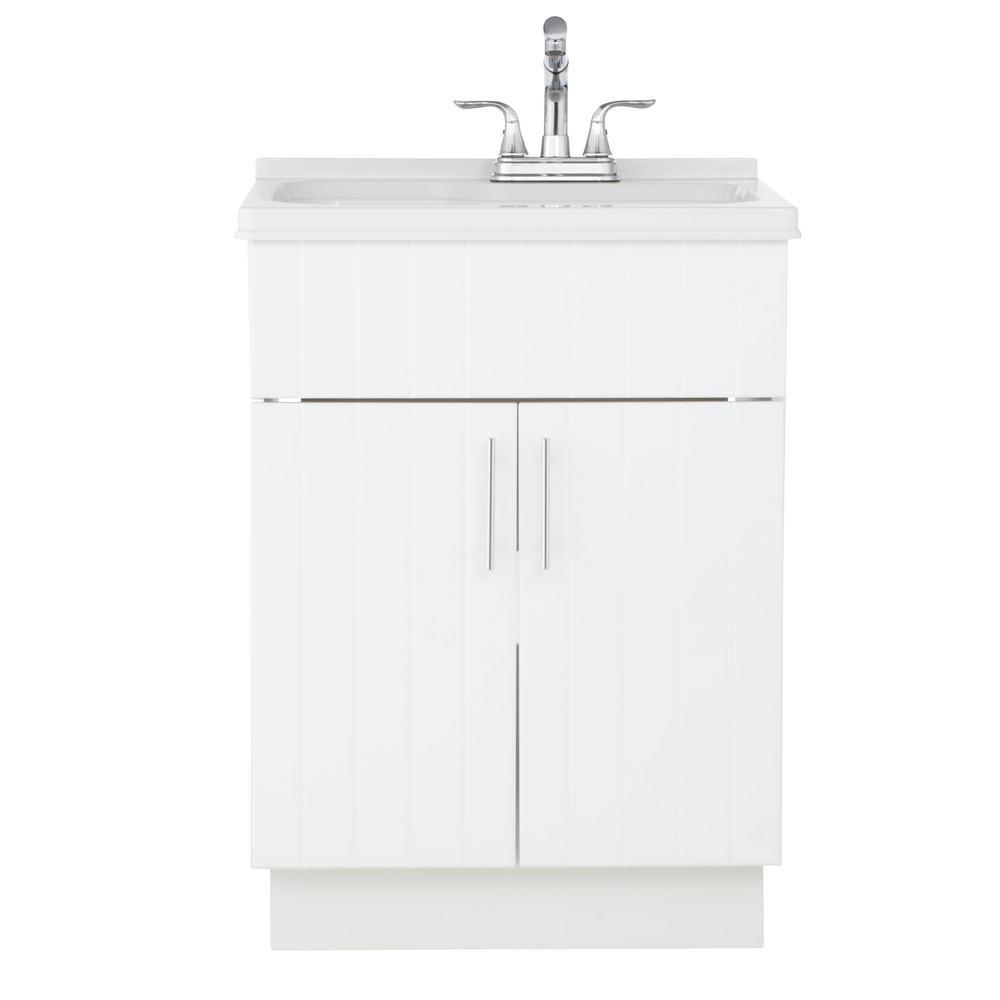This Presenza utility sink and storage cabinet is the perfect way to give your laundry room a sleek, modern look. This modern style cabinet is ideal for storage of laundry products. Convenient chrome pull-out two-handle faucet.