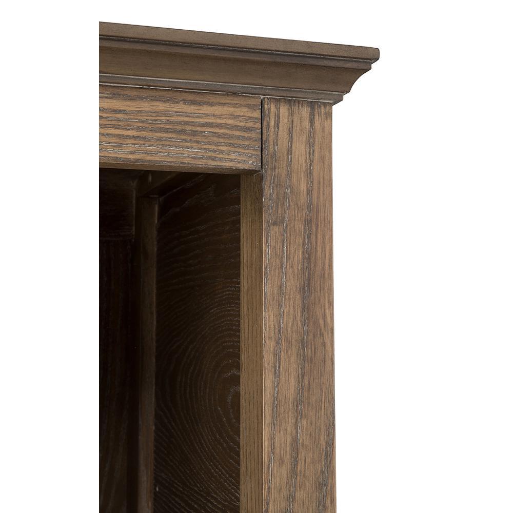 • Transitional style with decorative routed wood accents and reclaimed oak finish