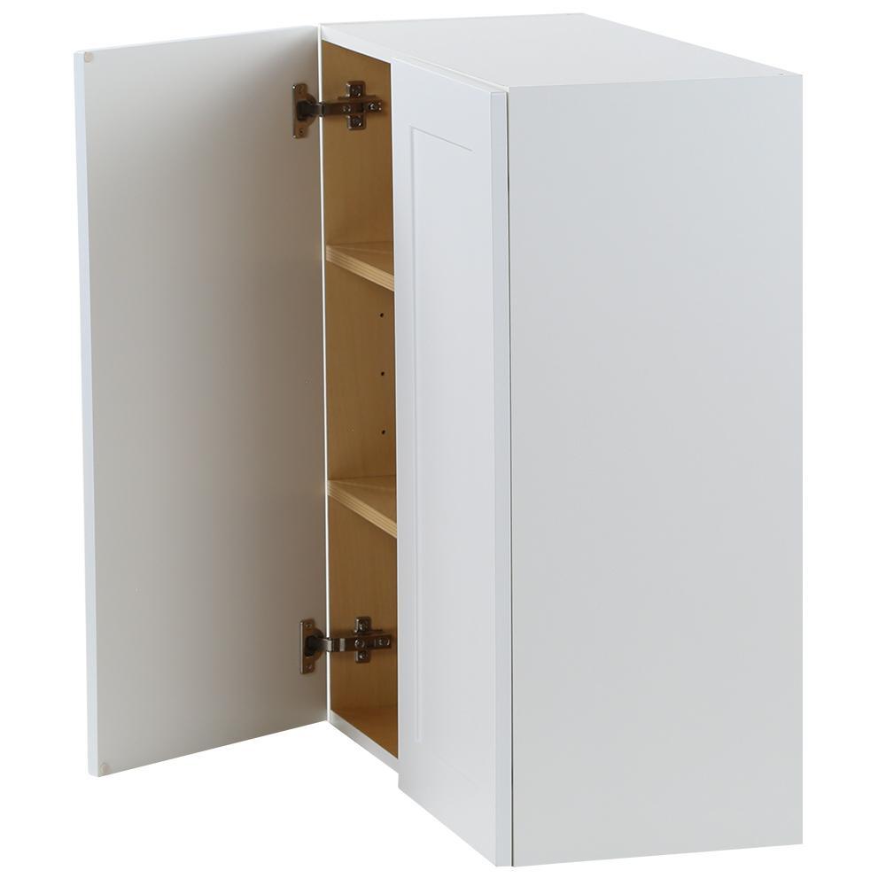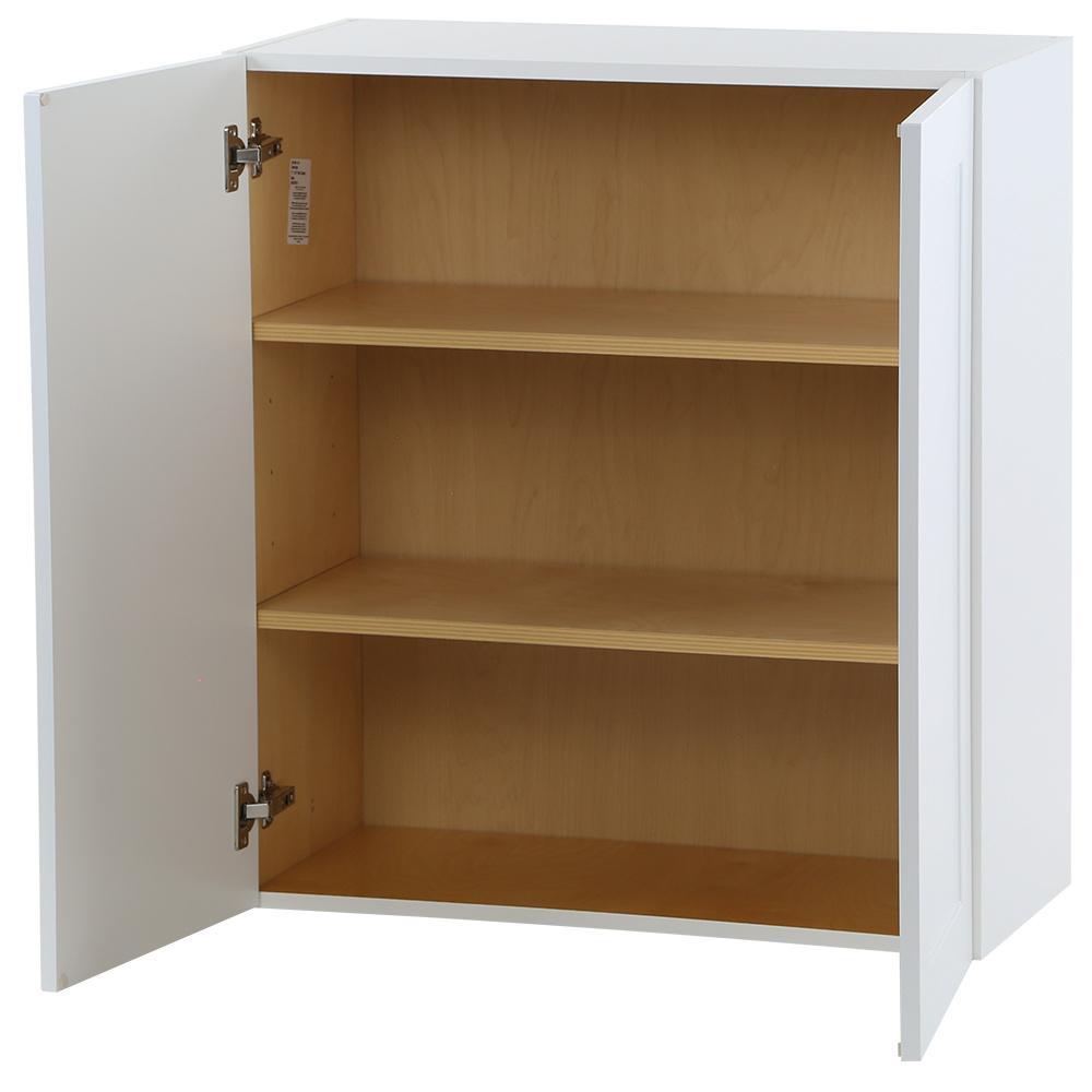 Giving you that transitional/modern look that will be sure to evoke a chic presentation, the Cambridge 27 in. W assembled wall cabinet is beautifully crafted with 2 shaker style RTF doors. The Cambridge collection offers a brilliant, solid white complexion on an all plywood cabinet with a natural wood interior that is sure to add a touch of brilliance to any room. Including a full overlay door style, the wall cabinet is fully assembled making it easy for you to build the kitchen, bathroom, laundry room, or office of your dreams.