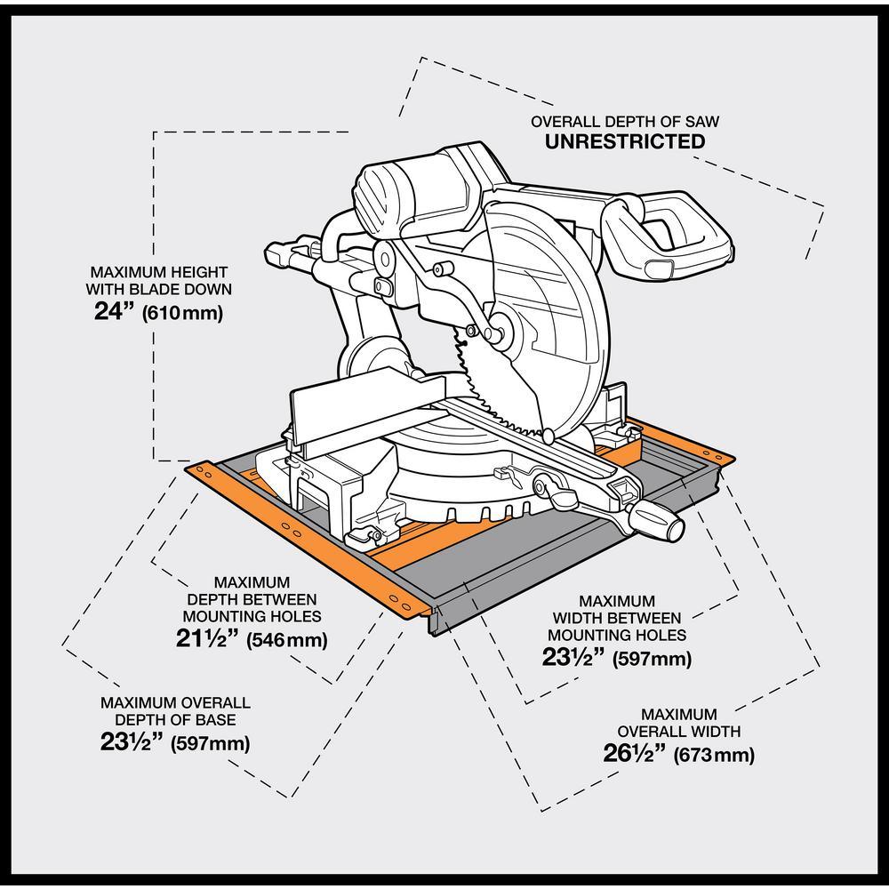 • Fits any miter saw up to 26.5” wide