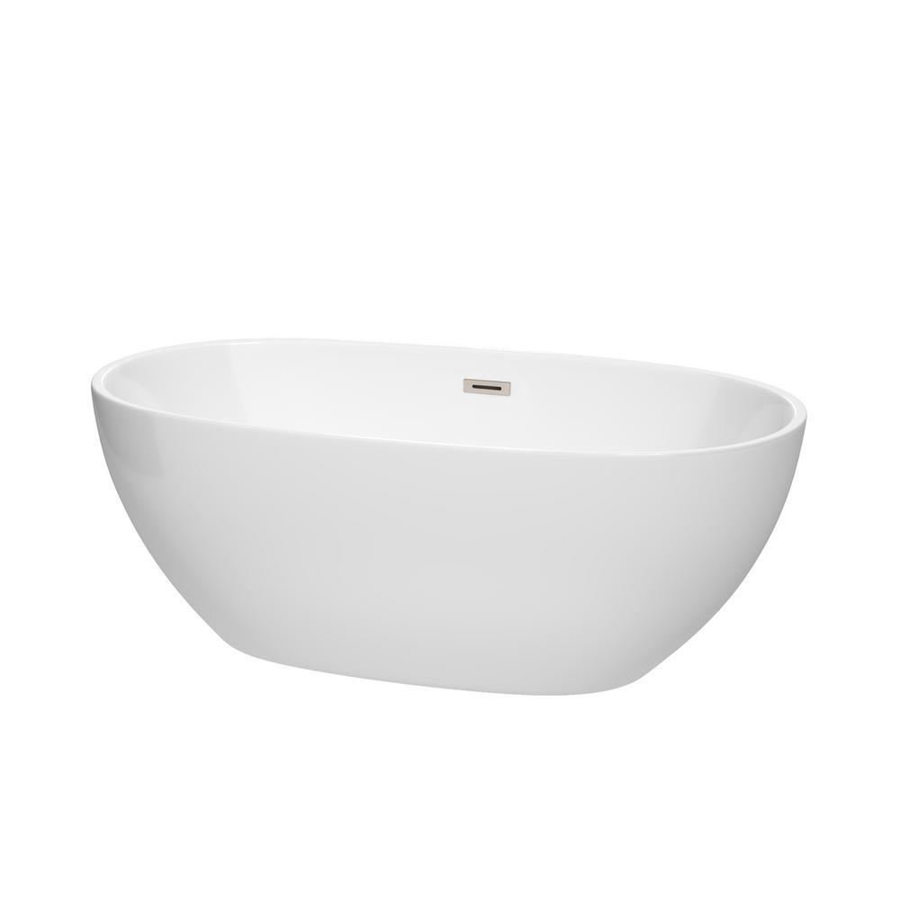 Juno 5.3 ft. Acrylic Flatbottom Non-Whirlpool Bathtub in White with Brushed Nickel Trim