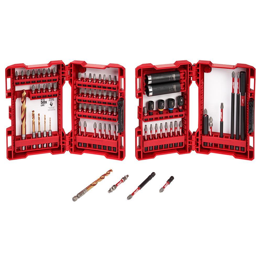The Milwaukee Shockwave 75pc Impact Drill & Drive Set is engineered to be the Most Durable, Best Fitting driver bits on the market. The Wear Guard Tip delivers increased wear resistance which protects the impact bit's fit over the life of the bit. The Shockzone is optimized for each tip type and length of driver bit in the set to absorb peak torque and prevent breaking. The driver bits have Custom Alloy76 for a customized steel and heat treatment per tip type to extend the life of the user's driver bits, providing up to 50X life versus other impact driver bits on the market. The Milwaukee Shockwave driver bits are built to provide users with extreme durability for the most demanding applications.