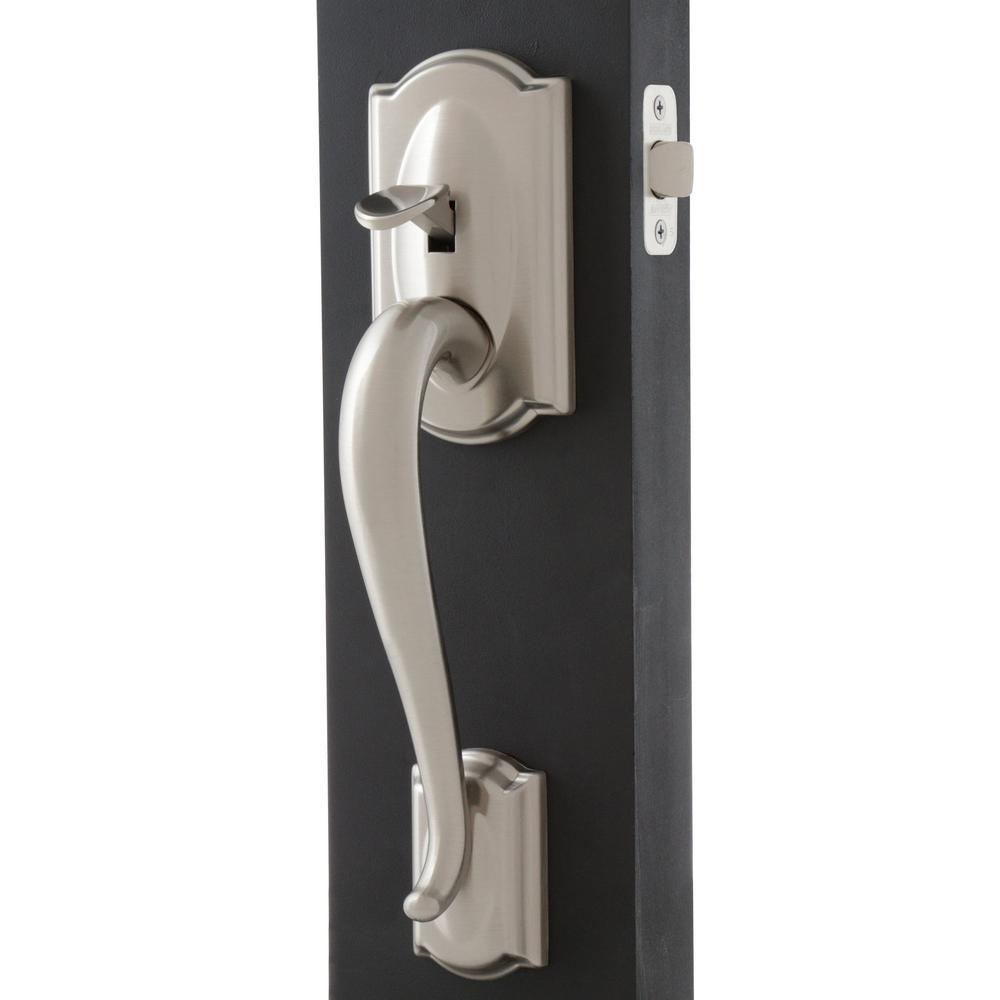 The Schlage Camelot Satin Nickel Entry Door Handle and Left Handed Flair Lever is perfect for use on exterior doors where extra security is needed. The right handed Flair lever design features a traditional scroll design to compliment a wide range of styles from traditional to contemporary, and the handle's Camelot trim features scalloped architectural details make any room charming and approachable. When finished in Satin Nickel, the lever offers a tasteful and flattering accent to any home. The lever unlocks when the door is opened from the inside, allowing you to leave quickly and conveniently and re-enter easily. Plus, it was designed and tested with strength and durability in mind.