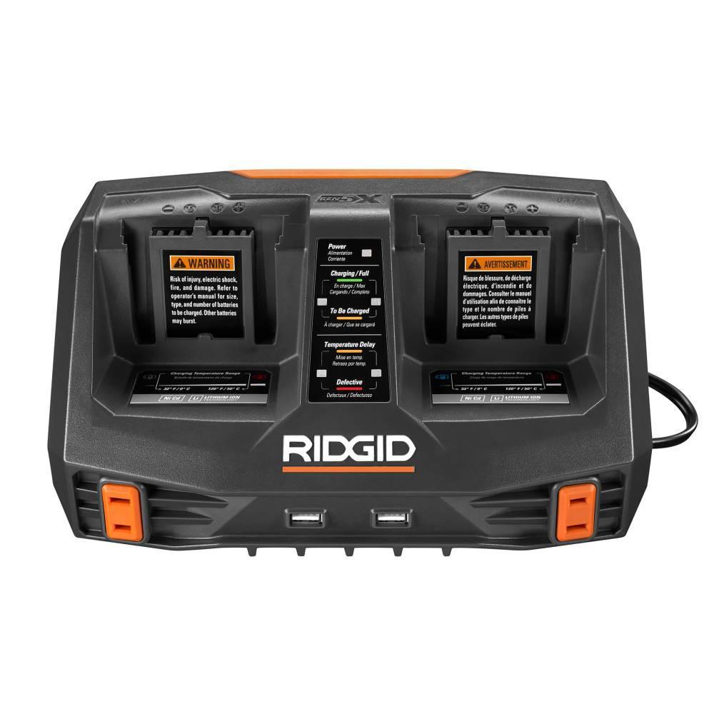 RIDGID introduces the 18-Volt Lithium-Ion Dual Port Sequential Charger Kit with (1) 4.0 Ah Batteries and (1) 2.0 Ah Batteries. This charger gives you the ability to charge any two RIDGID 18-Volt batteries sequentially. Save time in between recharges on the jobsite with 2 charge ports compared to one. Pair that with the two included Lithium-Ion Batteries and you are set for any jobsite. Backed by the Industry Leading Lifetime Service Agreement, this kit comes with an 18-Volt Dual Port Sequential Charger, (1) 4.0 Ah Lithium-Ion Batteries, (1) 2.0 Ah Lithium-Ion Batteries, and an operator's manual.