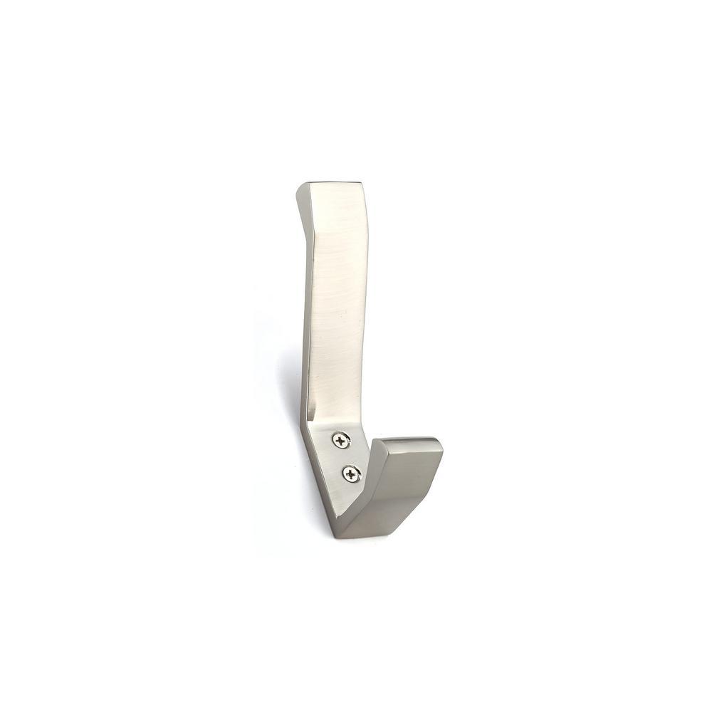 The strong lines of this funky hook are ideal for your modern space. A cool, crisp detail to enhance any room. Mounting hardware included for easy installation.