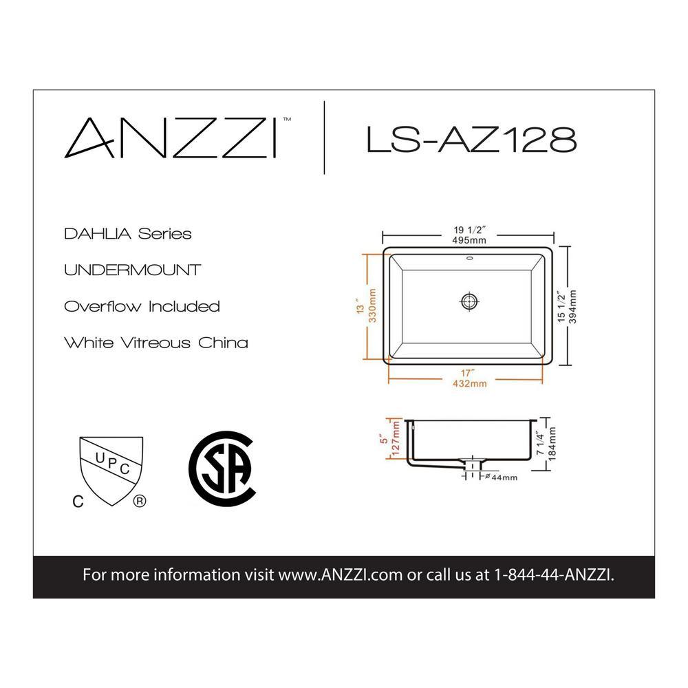 Introduce an exquisite piece of modern contemporary artistry to your washroom with the ANZZI Dahlia Series undermount Vitreous China bathroom sink. The ANZZI Dahlia is crafted using the finest quality Vitreous China resulting in a smoothly polished basin with the delicate features of fine china and the stubborn durability of high-end ceramics. ANZZI continues to deliver the latest trends and modern styles to your home to help you build your ideal living space.