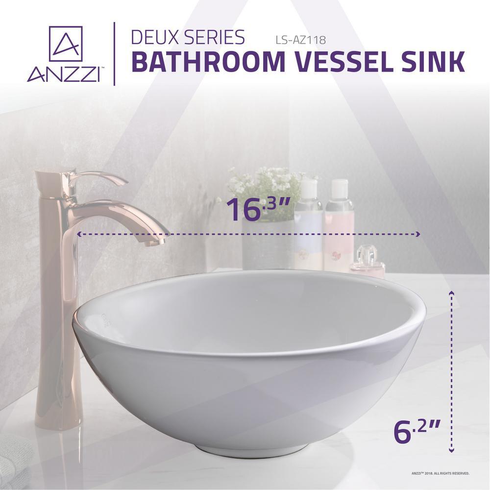 Introduce an exquisite piece of modern contemporary artistry to your washroom with the ANZZI Deux Series Vessel Vitreous China bathroom sink. The ANZZI Deux is crafted using the finest quality Vitreous China resulting in a smoothly polished basin with the delicate features of fine china and the stubborn durability of high-end ceramics. ANZZI continues to deliver the latest trends and modern styles to your home to help you build your ideal living space.