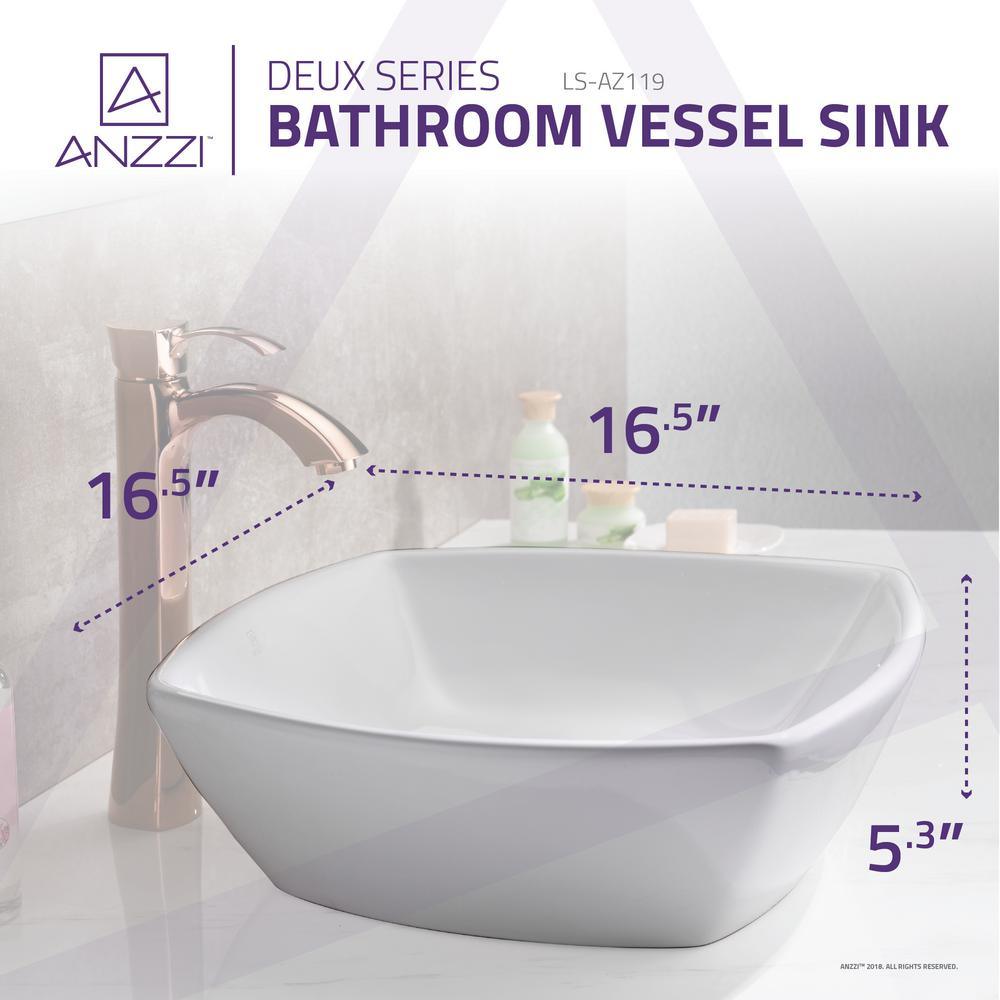 Introduce an exquisite piece of modern contemporary artistry to your washroom with the ANZZI Deux Series Vessel Vitreous China bathroom sink. The ANZZI Deux is crafted using the finest quality Vitreous China resulting in a smoothly polished basin with the delicate features of fine china and the stubborn durability of high-end ceramics. ANZZI continues to deliver the latest trends and modern styles to your home to help you build your ideal living space.