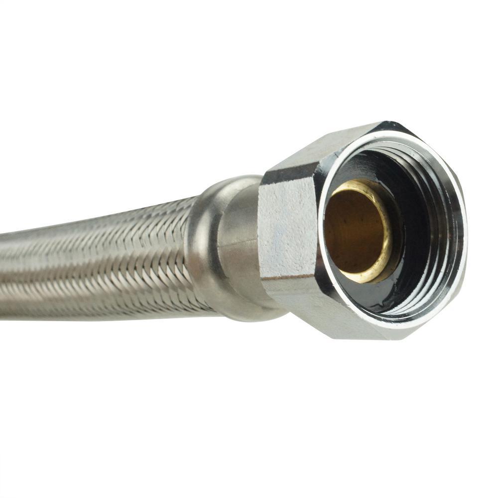 The 3/4 in. x 18 in. Tectite by Apollo Water Heater Connector with Factory Integrated Ball Valve was designed for the fast and simple installation of hot and cold water lines to water heaters. After applying pipe thread tape to the MNPT nipples on your water heater, thread the FNPT end of the Water Heater connector onto the tank and tighten with pliers. Then simply push the Tectite by Apollo Push-To-Connect end onto Copper, PEX, or CPVC pipes and your water heater is connected. The Integrated Ball Valve on the Tectite by Apollo Water Heater Connector provides a quarter-turn, single handle shut-off. The braided stainless steel lines are available in different lengths from 12 in. - 24 in. (without Ball Valve) and are also available in Corrugated Stainless Steel. Tectite by Apollo Water Heater Connectors dramatically reduce water heater installation times.