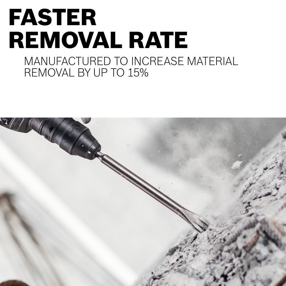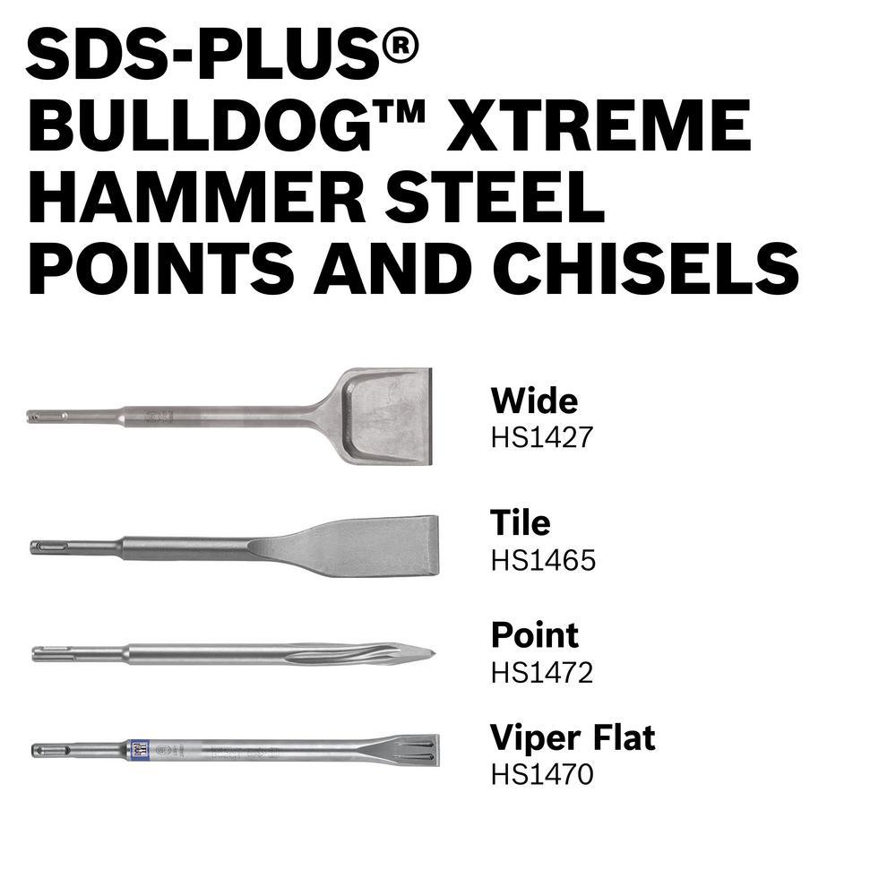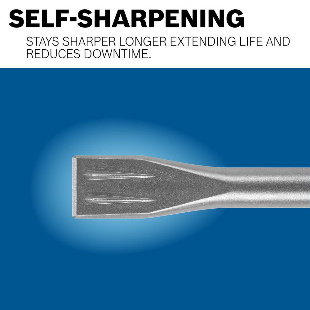 Bosch offers a full assortment of SDS-Plus hammer steel points and chisels. Removes tiles at a faster rate with less effort. Flat spade design creates a self-sharpening edge, eliminating downtime.