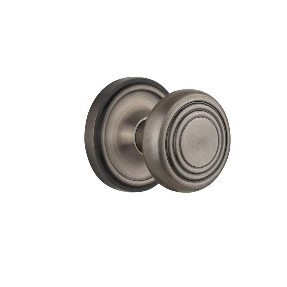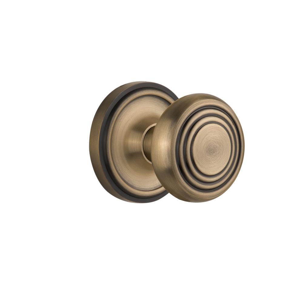 Classic Rosette 2-3/8 in. Backset Antique Brass Privacy Bed/Bath Deco Door Knob