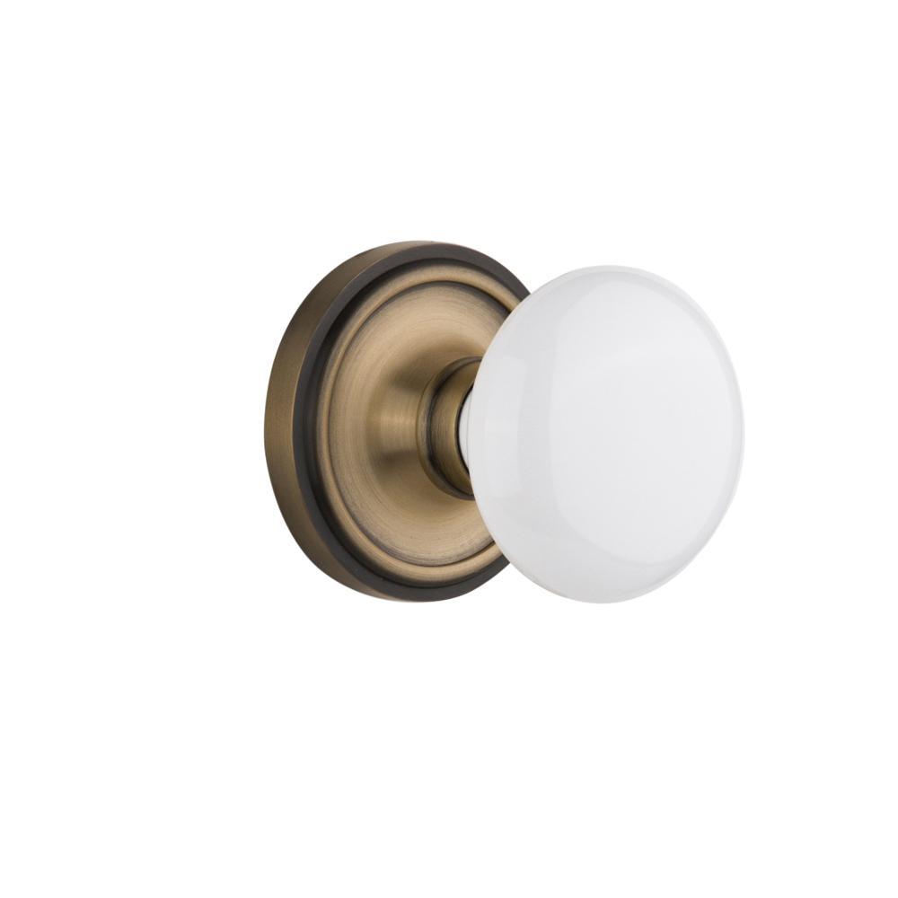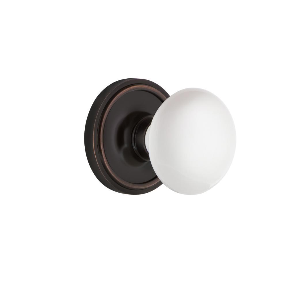 Classic Rosette 2-3/8 in. Backset Timeless Bronze Passage Hall/Closet White Porcelain Door Knob