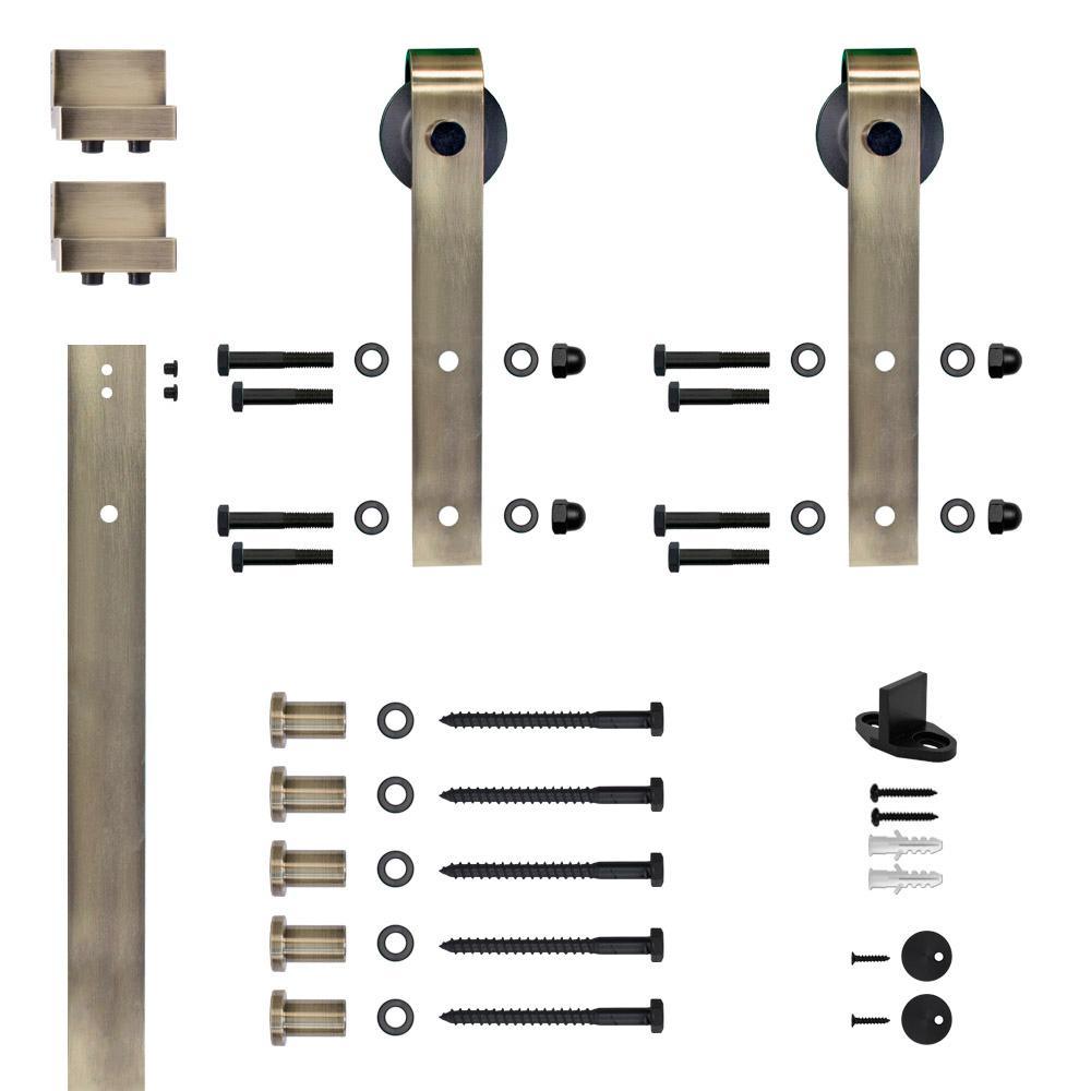 Soft Close Hook Strap Antique Brass Rolling Barn Door Hardware Kit with 2-3/4 in. Wheel