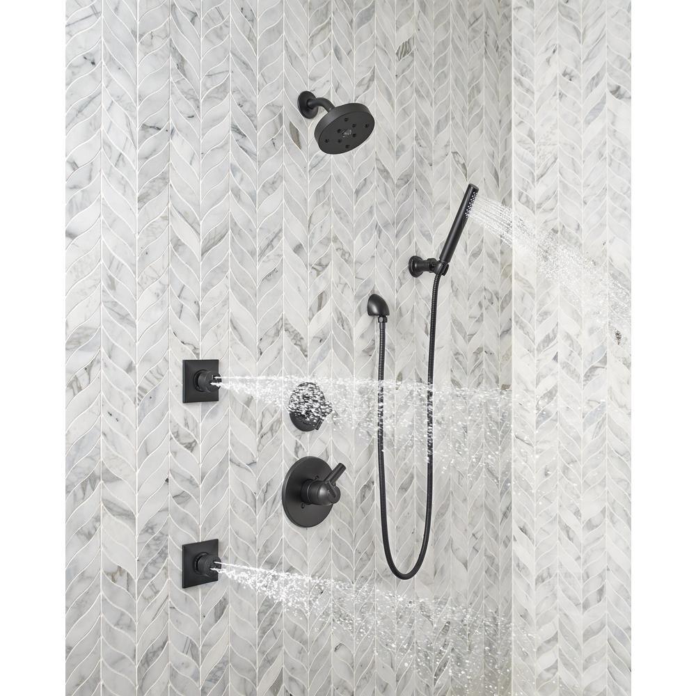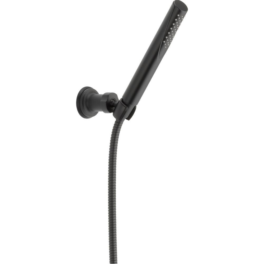 Experience a better shower with the control and flexibility of a Delta hand shower. Great for showering yourself or your loved ones and pets, as well as for keeping your shower and tub clean. The Matte Black finish makes a statement in your space, cultivating a sophisticated air and coordinating flawlessly with most other fixtures and accents. With bright tones, Matte Black is undeniably modern with a strong contrast, but it can complement traditional or transitional spaces just as well when paired against warm neutrals for a rustic feel akin to cast iron. While other products may gather unsightly mineral build-up over time, Delta soft rubber Touch-Clean spray holes allow any mineral residue to simply be wiped away for an instantly refreshed look - with no need for soaking or the aid of chemical cleaners.