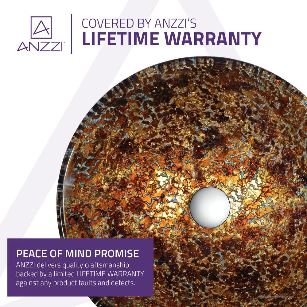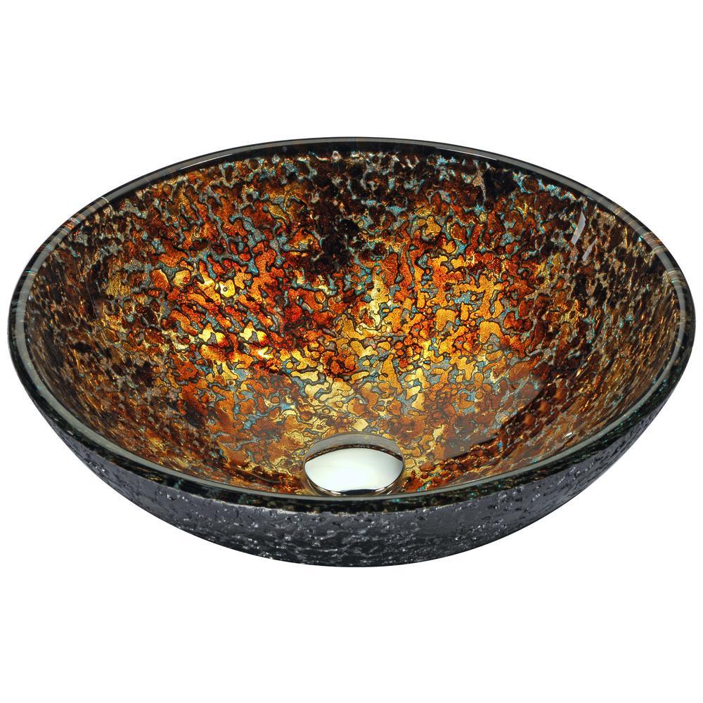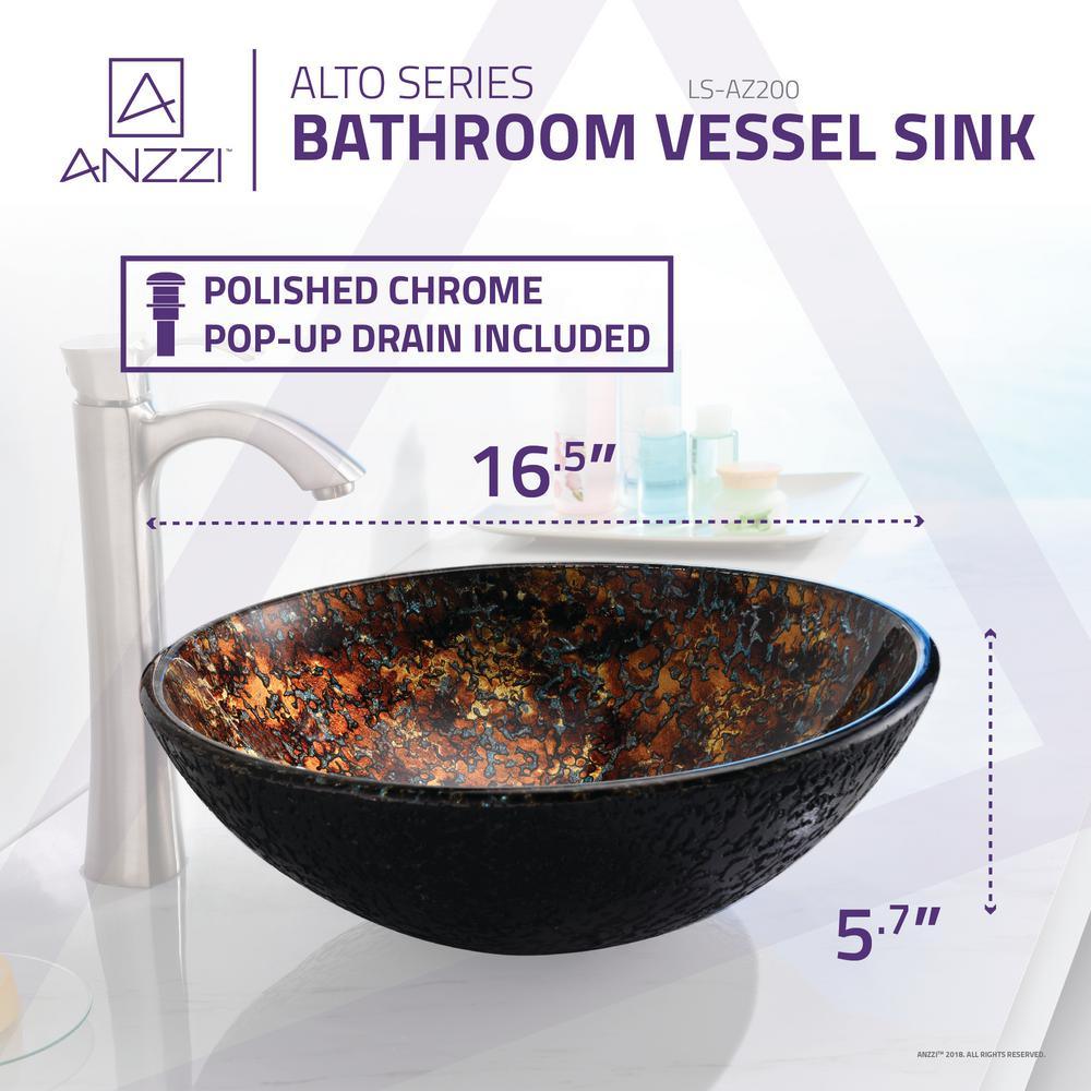 The ANZZI Alto Series sink is a traditionally crafted round vessel sink adorned in a molten Gold finish. Each ANZZI vessel sink if formed using Rhino alloy certified high tempered Deco-Glass material. The result is an elegantly shaped and captivating vessel centerpiece for any bathroom counter.