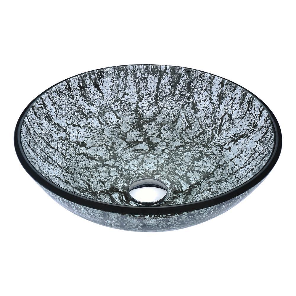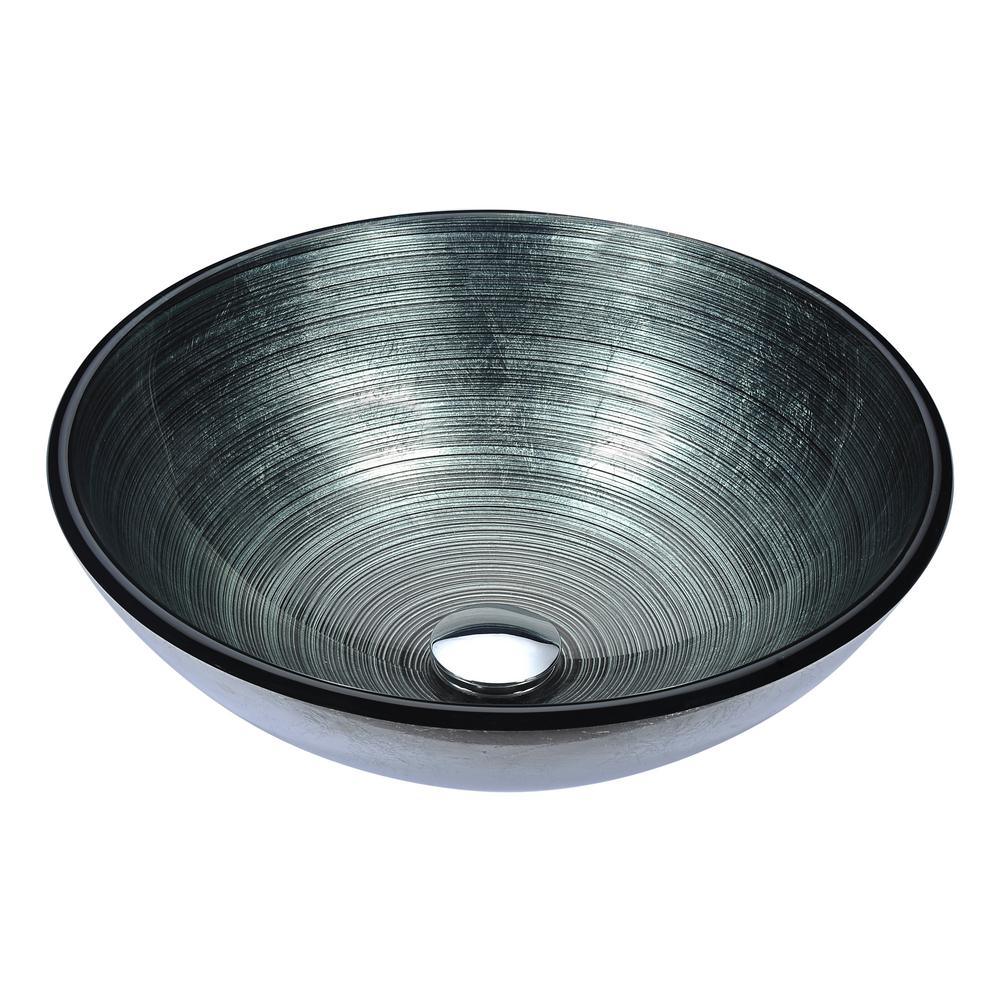 The ANZZI Posh Series sink is a traditionally crafted round vessel sink adorned in a Brushed Silver finish. Each ANZZI vessel sink is formed using RHINO ALLOY certified high tempered Deco-Glass material. The result is an elegantly shaped and captivating vessel centerpiece for any bathroom counter.