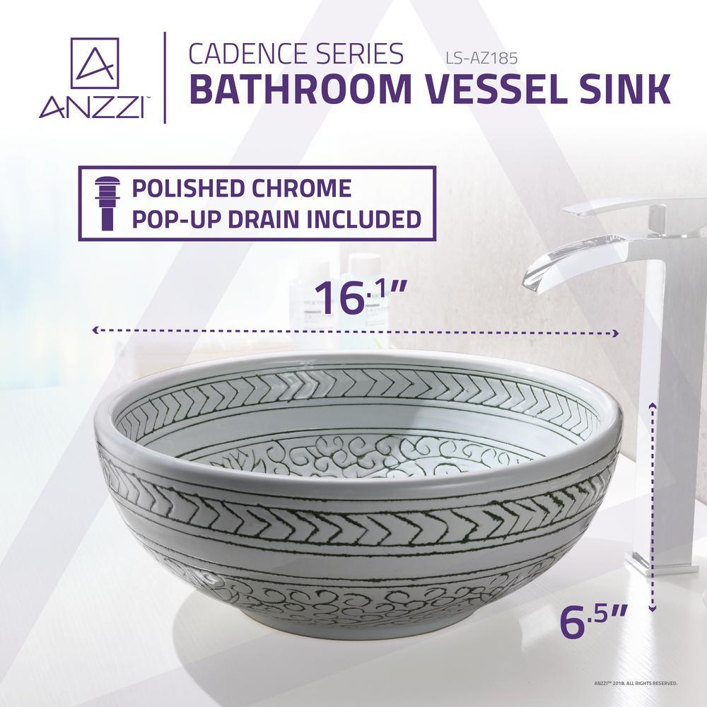 The ANZZI Cadence Series sink is a traditionally crafted round vessel sink adorned in a Decor White finish. Each ANZZI vessel sink if formed using Rhino alloy certified high tempered Deco-Glass material. The result is an elegantly shaped and captivating vessel centerpiece for any bathroom counter.