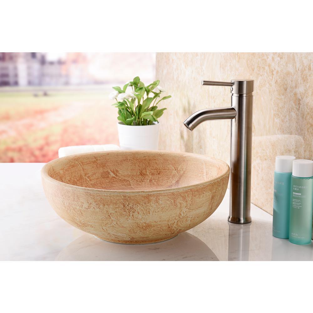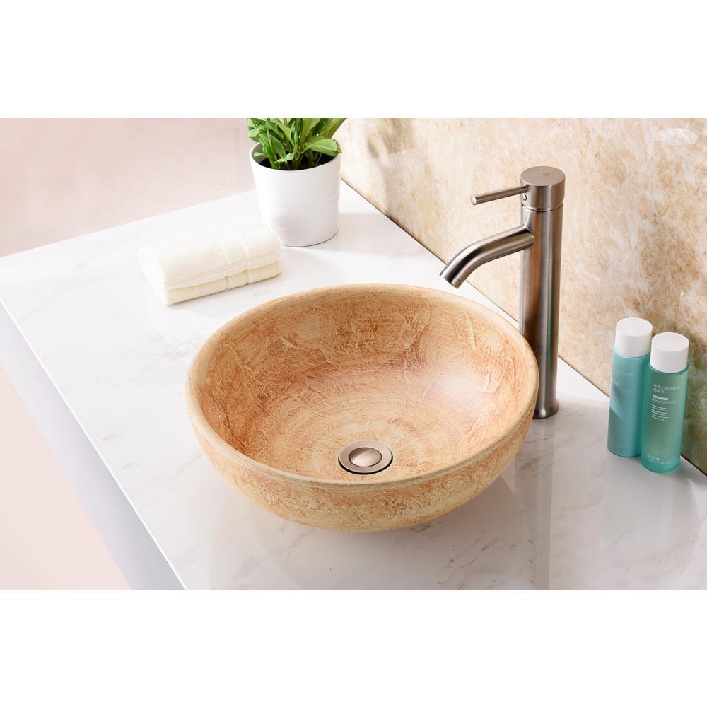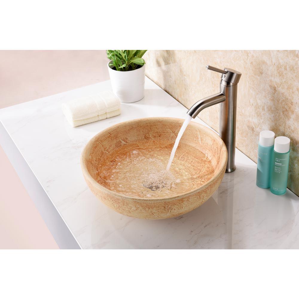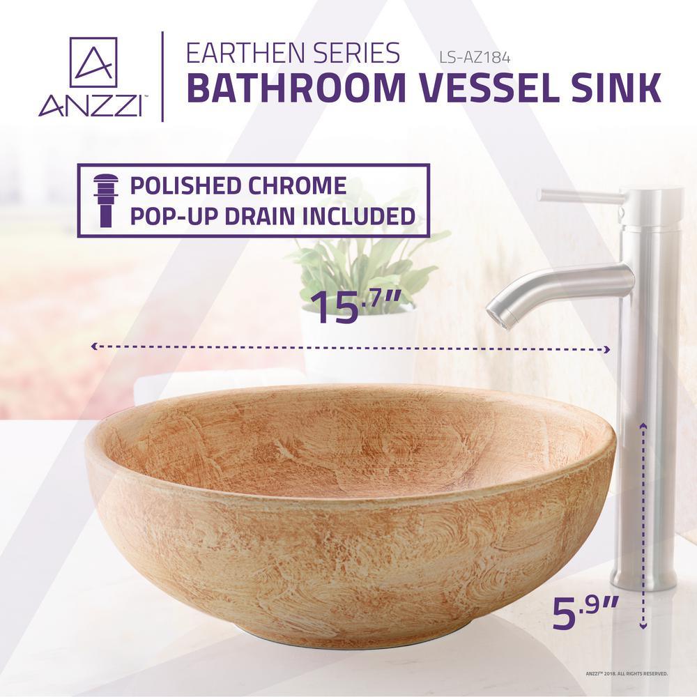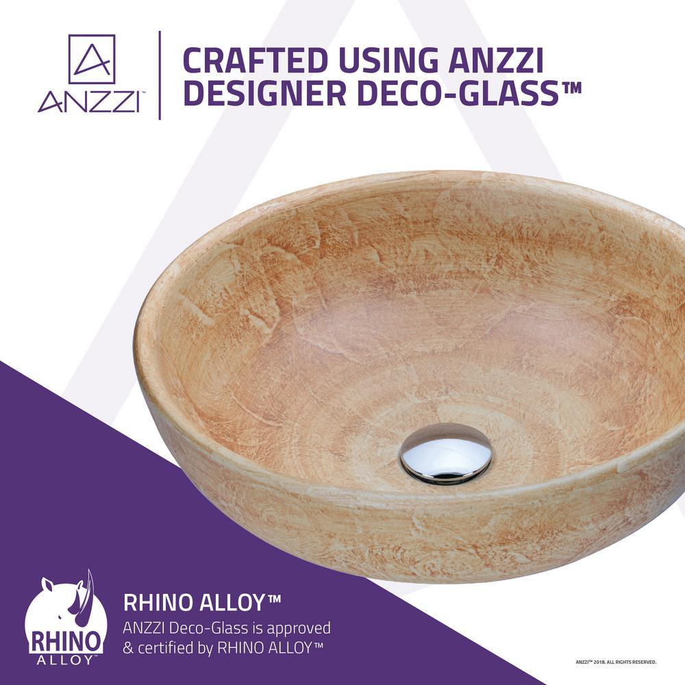 The ANZZI Earthen Series sink is a traditionally crafted round vessel sink adorned in a Creamy Beige finish. Each ANZZI vessel sink if formed using Rhino alloy certified high tempered Deco-Glass material. The result is an elegantly shaped and captivating vessel centerpiece for any bathroom counter.