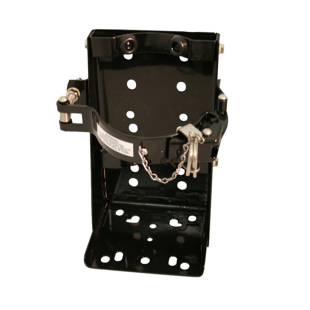 Kidde fire extinguisher vehicle brackets are constructed from quality-fabricated steel that is externally finished with a corrosion resistant black polyester epoxy paint, to extend service life in harsh outdoor environments. The bracket back brace and bottom plates come with pre-drilled mounting hole patterns that accommodate many existing applications. Each bracket is permanently marked with the applicable part number and designation for addressing USCG compliance requirements with listed and approved fire extinguisher models.