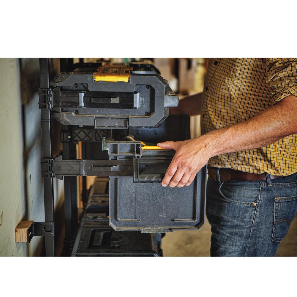 DEWALT TOUGHSYSTEM Workshop Racking System enables the storage and organization of TOUGHSYSTEM modules. This rack offers a flexible variety of arrangements allowing users to modify the workshop to meet their storage needs. Compatible with most DEWALT TOUGHSYSTEM products.