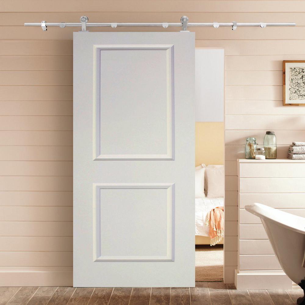 Top Mount Door Track Hardware and White Primed MDF Raised 2 Panel Interior Sliding Barn Door