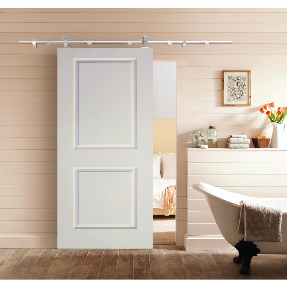Top Mount Door Track Hardware and 36 in. White Primed MDF Raised 2 Panel Interior Sliding Barn Door