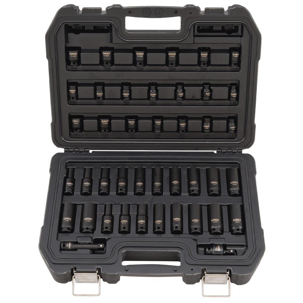 • 3/8 in. drive 6-point deep impact sockets: metric 8,9, 10, 11, 12, 13, 14, 15, 16, 17, 18, 19, SAE 5/16, 3/8, 7/16, 1/2, 9/16, 5/8, 11/16, 3/4