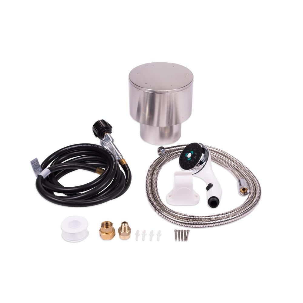 Huge pressure and huge output - that's the name of the game when you combine the Eccotemp L10 with the small but powerful Flojet 2.9 GPM 50 psi. With almost twice the GPM of its smaller sibling the Eccotemp L5, the L10 has long been the high volume portable water heater of choice for cabins, lake houses, and base camps. But if your little piece of outdoor paradise doesn't include a water faucet, then you're out of luck. This is where the Flojet Water Pump, a perfect fit with the L10, comes in. With its 2.9 GPM 50 psi specs, this powerful little pump stands up to the high-volume output of the L10 and will turn any container or body of cold water into instant, pressurized hot water. Add the Flojet Inlet Strainer into the mix and not only will that freezing lake water turn into a nice steaming hot shower, it will also be free of dirt and rocks and other debris. Straining out the debris will also keep your pump running at peak condition by preventing unnecessary breakdowns. When facilities are lacking, keep your L10 running at maximum capacity with the Flojet 2.9 GPM 50 psi. The bundle includes a Shower Head and Stainless Steel Hose providing you with an optimal shower experience. The multi-functional shower head lets you choose between a natural shower spray, a massage spray or just a mist. The mounting and hardware pack are also included.