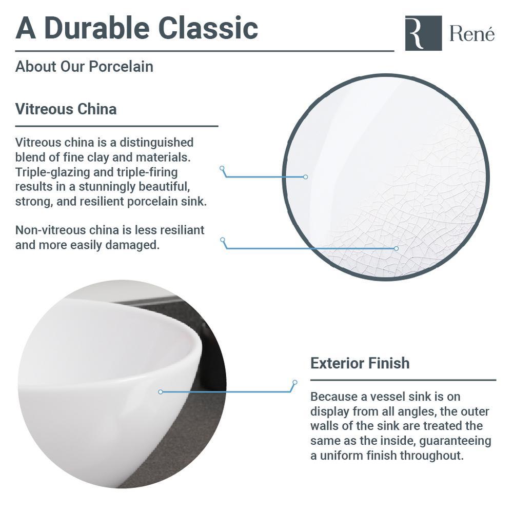 - Glazed vitreous china - special enamel coating and firing transforms ceramic into durable china