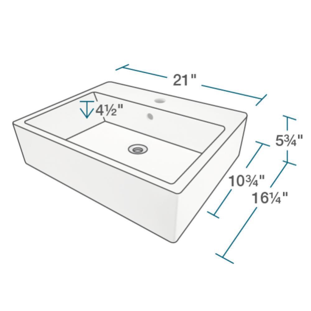 - Captivating form - a glistening, rectangular vessel with pre-drilled faucet hole and overflow