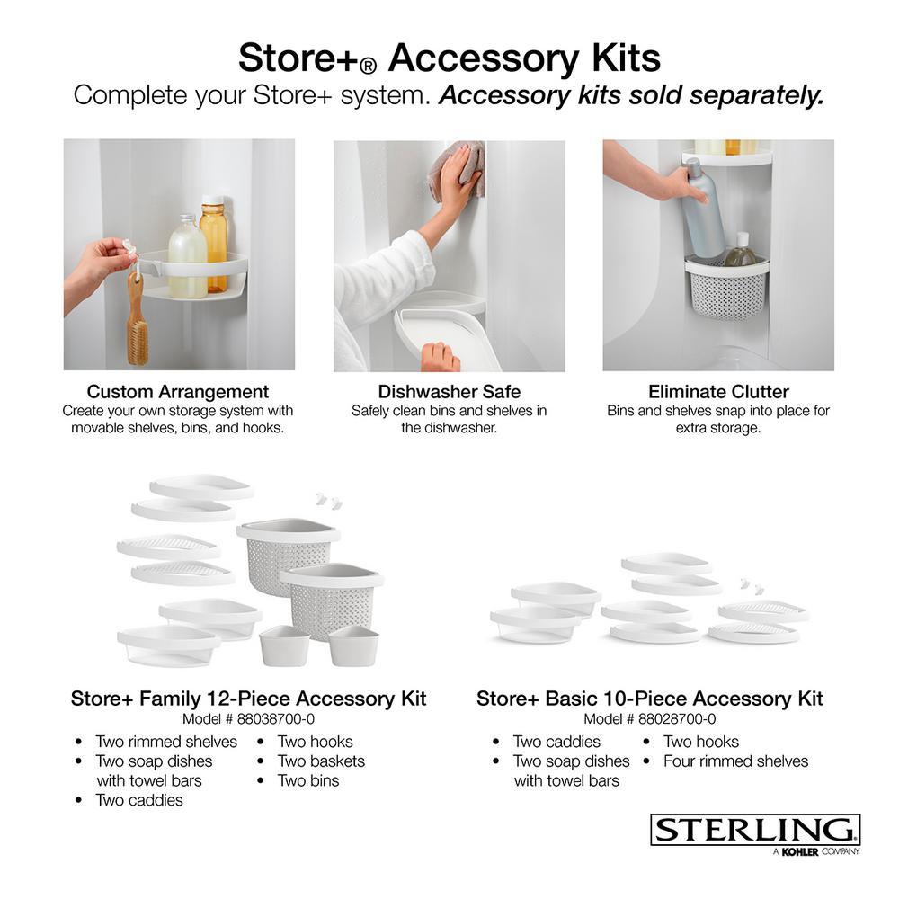 STORE+ is a fully customizable storage shower system with interchangeable accessories to eliminate clutter and organize your shower to fit your needs. Interchangeable corner accessories maximize your showering space. Need following products for complete shower: 72332700-0, 72171720-0 OR 72171710-0, 88038700-0 OR 88028700-0.