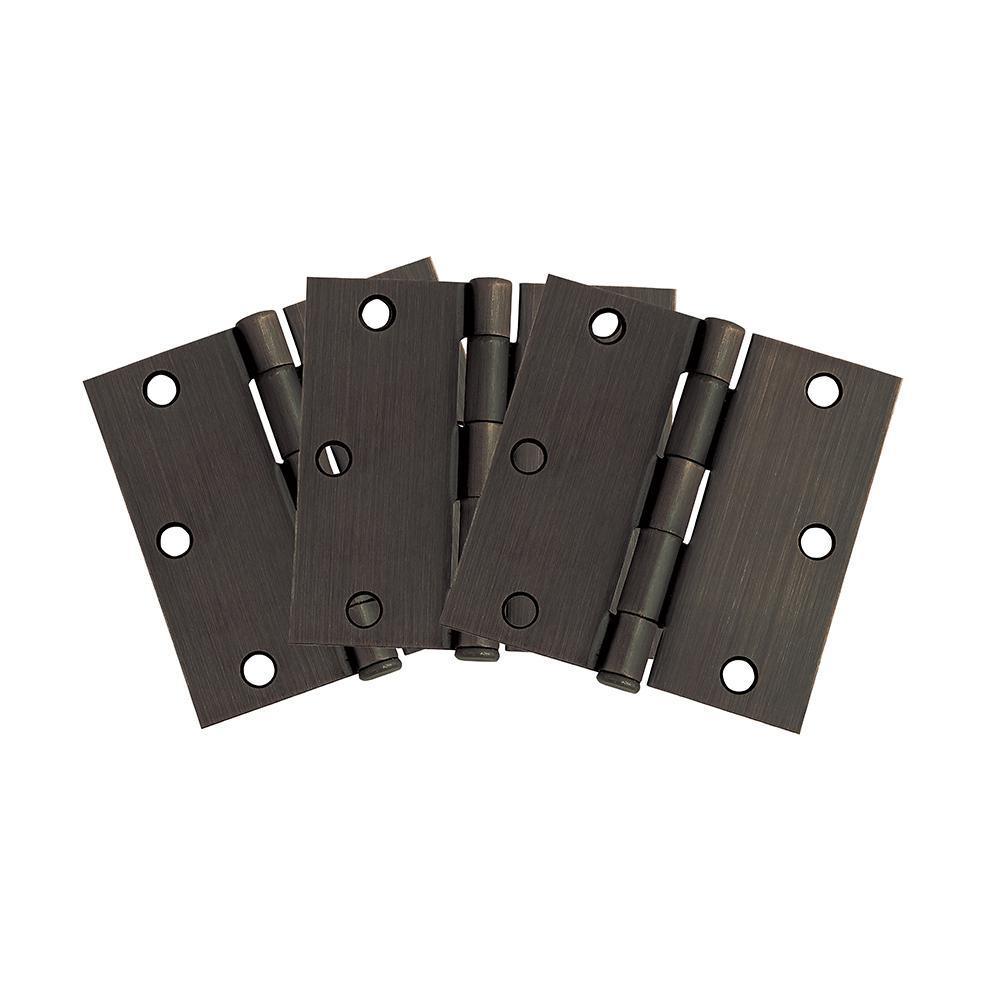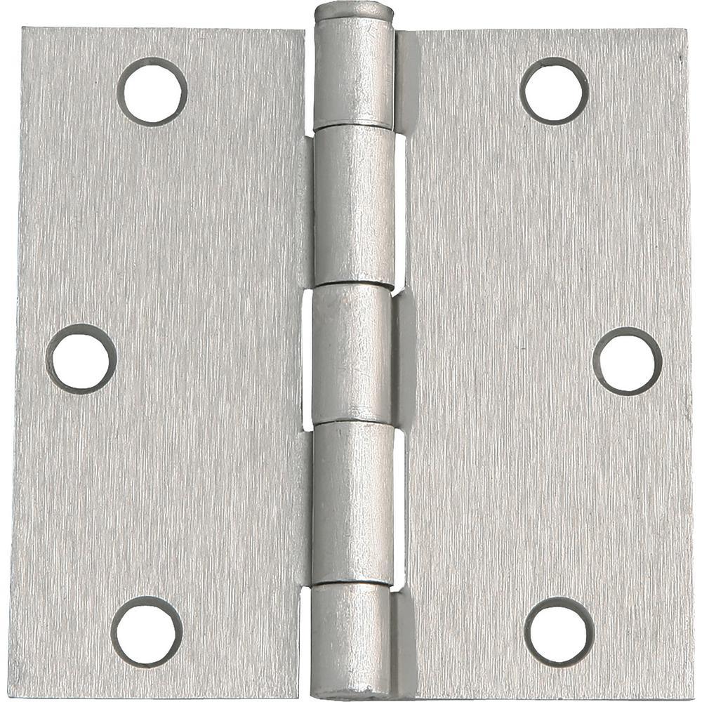 The Design House 202515 10-Pack Hinge 3.5 in. in Satin Nickel has a square corner, for use on residential duty wooden doors. These door hinges are made of steel with a staggered hole pattern. Each hinge has 6 holes and measures 3-1/2 in. x 3-1/2 in. x 7/16 in. These hinges do not have a removable pin and screws are included. Design House offers products in multiple home decor categories including lighting, ceiling fans, hardware and plumbing products. With years of hands-on experience, Design House understands every aspect of the home decor industry and devotes itself to providing quality products across the home decor spectrum.