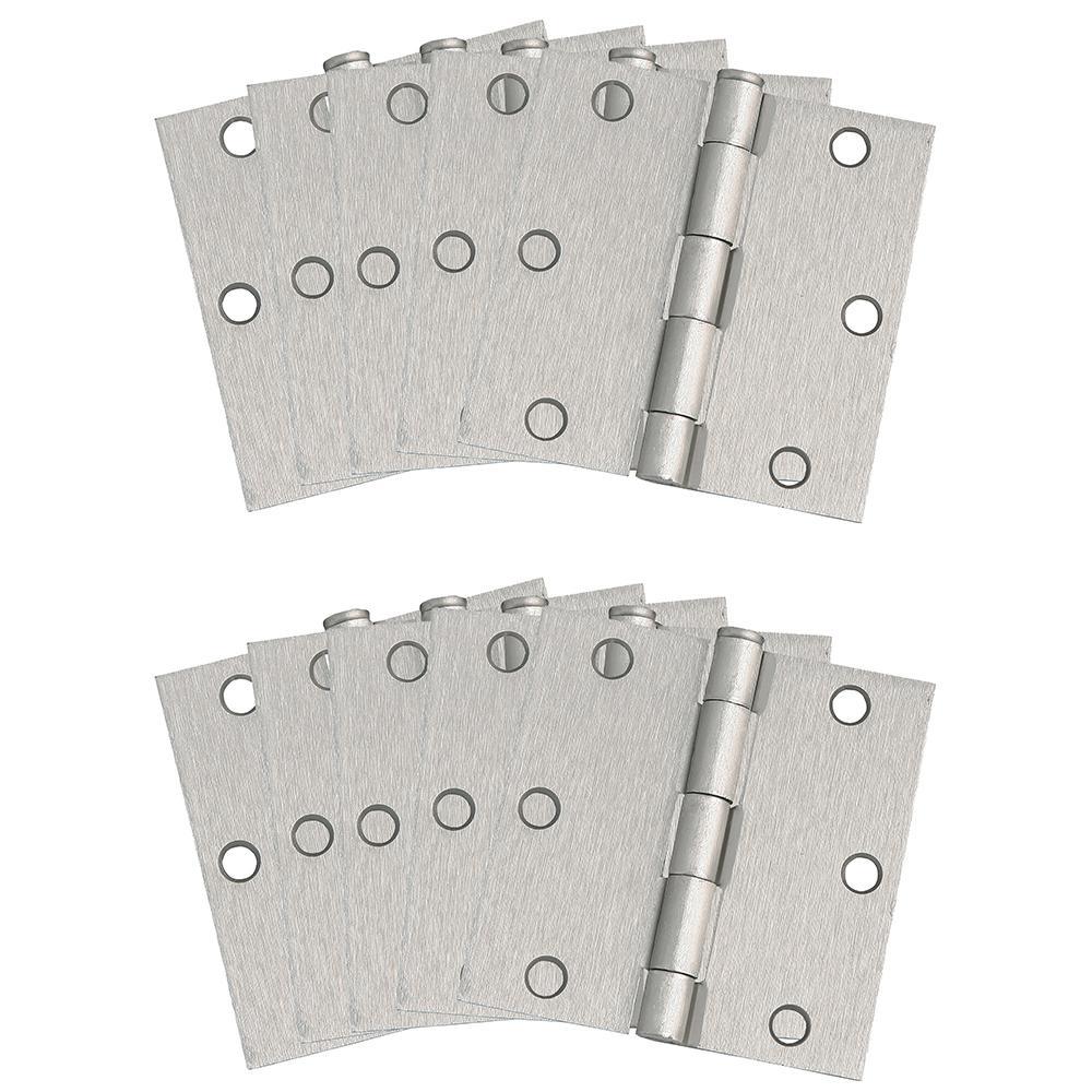 3-1/2 in. Square Corner Satin Nickel Door Hinge Value Pack (10 per Pack)