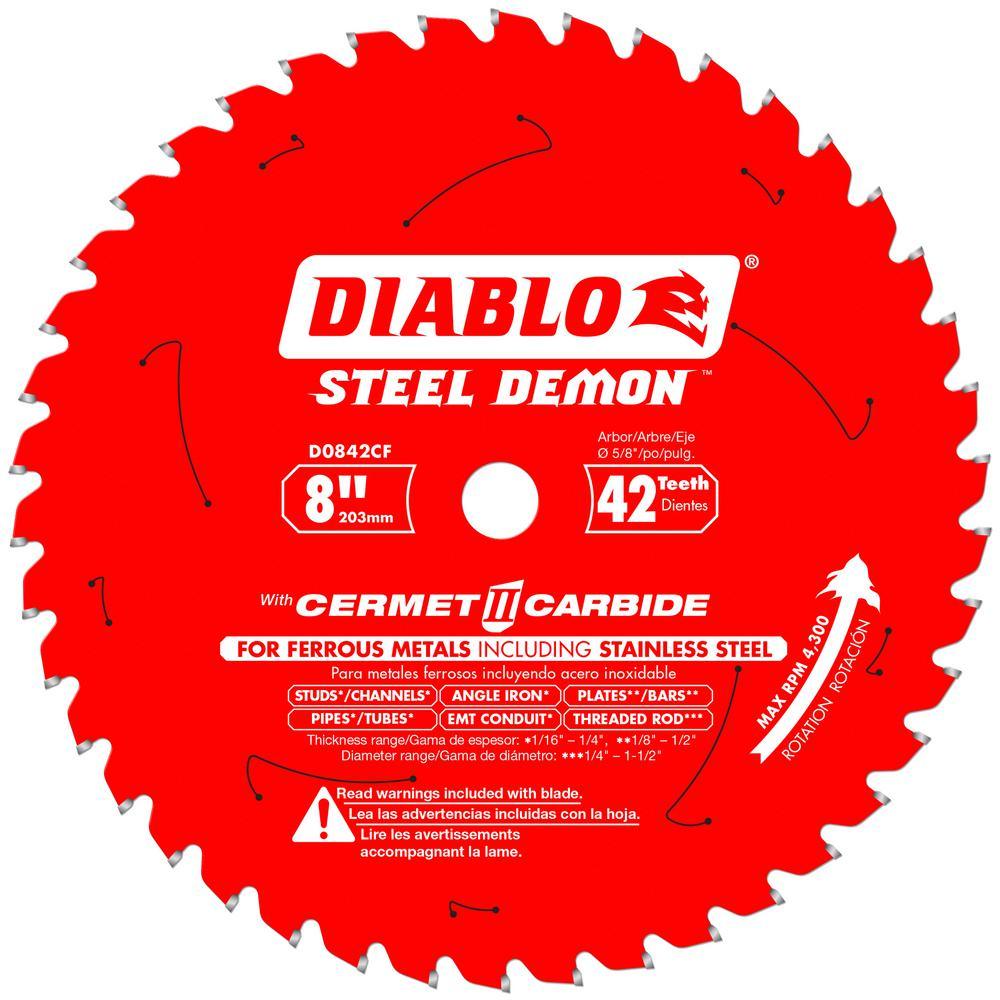 Diablo's new Steel Demon Cermet blades cut both metal and stainless steel while providing 5x the cutting performance than standard metal cutting blades. By delivering the ultimate metal cutting performance and unmatched value story, this blade is a game changer for metal cutting. This blade features new, exclusive innovation with specially formulated Cermet teeth with a Triple Chip Grind Tooth Design, laser cut blade bodies, anti-vibration technology, and PERMA-SHIELD non-stick coating to deliver precise cuts with no sparks and cool, burr-free edges.